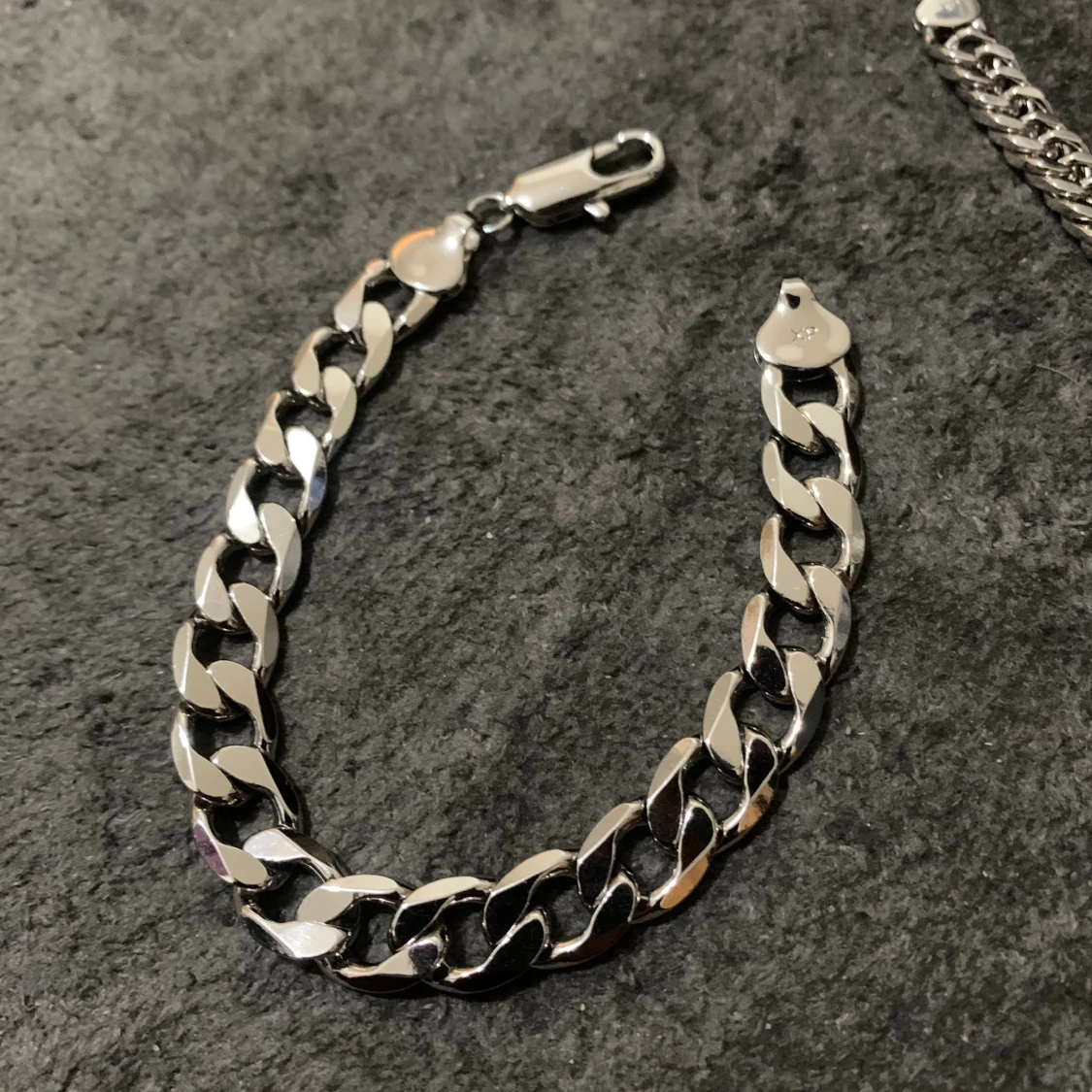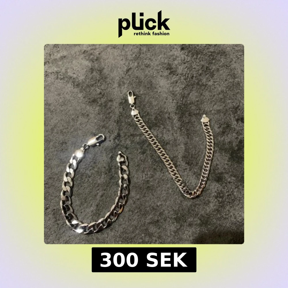 Säljer ett chunky kedjearmband och ett matchande halsband i silverfärgad metall. Båda har platta, breda länkar och robusta karbinlås. Perfekt för dig som gillar stilrena och tuffa accessoarer med lite edge. Snyggt att bära tillsammans eller var för sig.