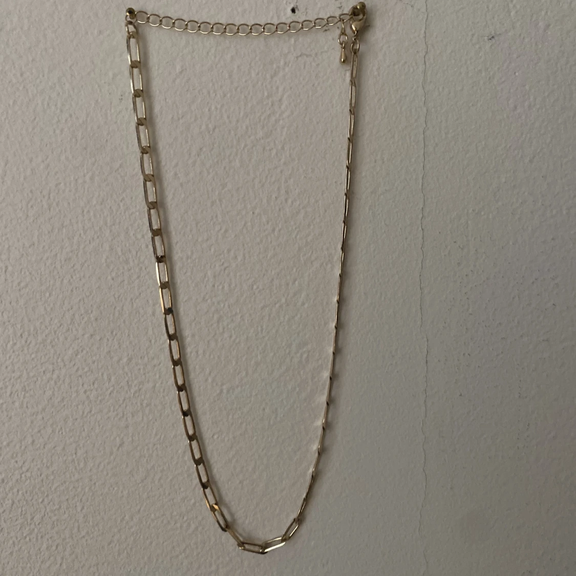 Kedjehalsband från H&M. Använt fåtal gånger, bra skick. Kort halsband, perfekt till högre tröjor!