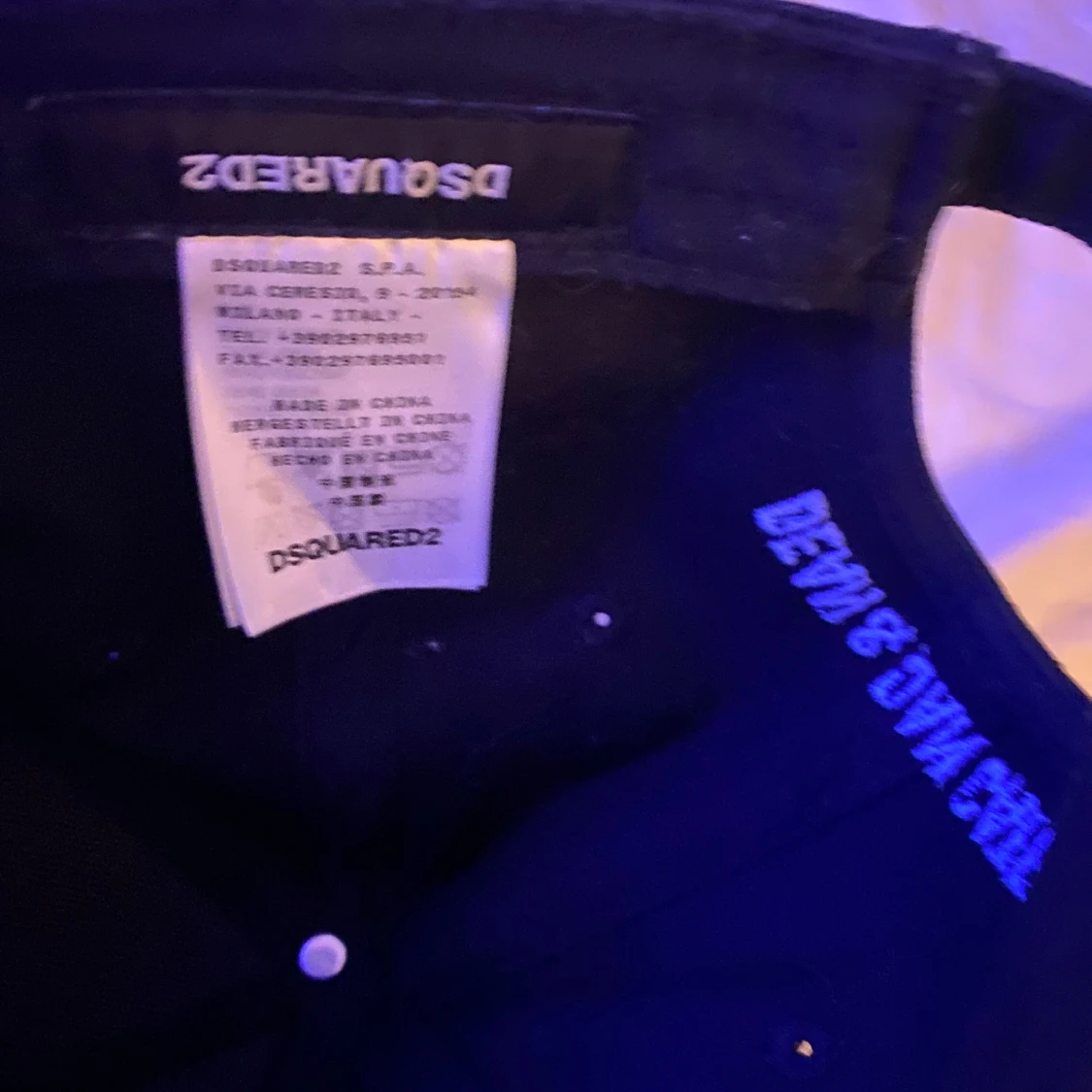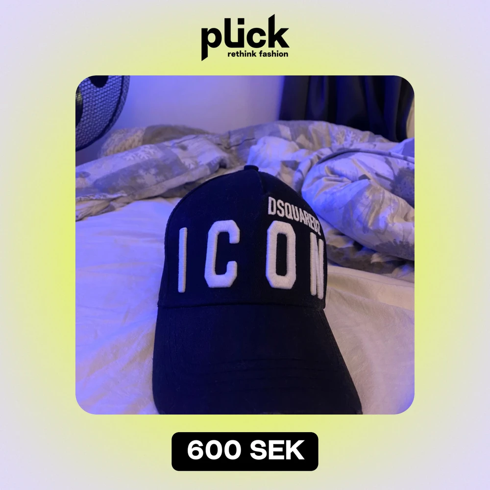 Säljer en svart keps från Dsquared2 med texten 'ICON' broderad i vitt på framsidan. Kepsen har en justerbar rem baktill och är i bra skick. Passar de flesta huvudstorlekar. Självklart äkta!