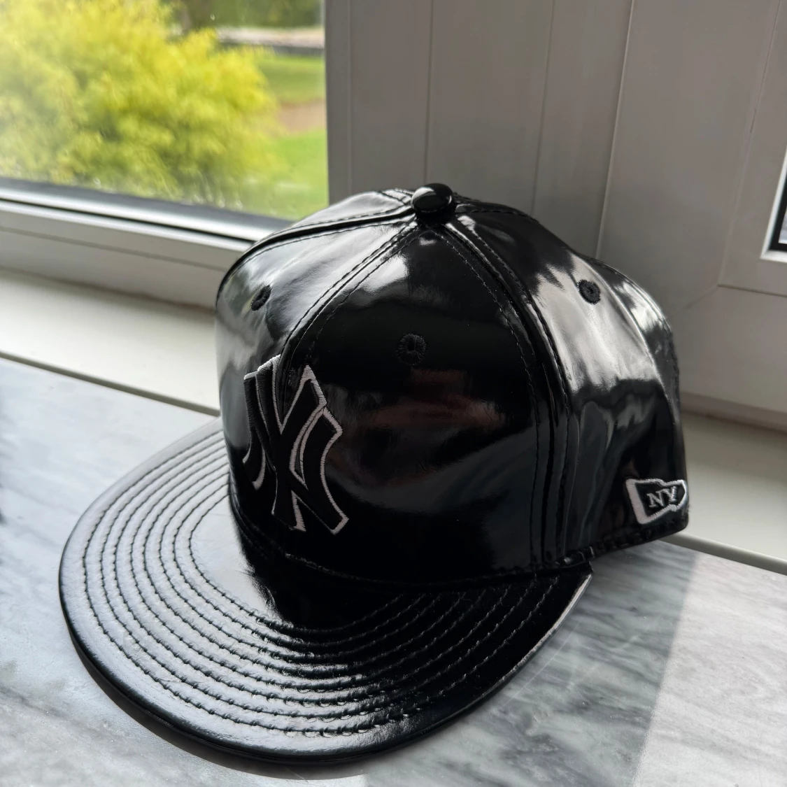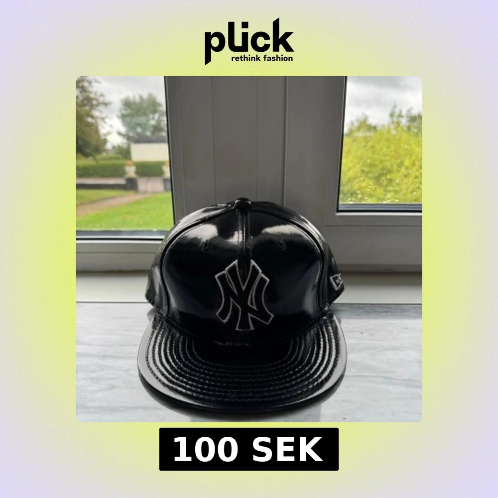 Snygg svart keps från New York Yankees med blank finish och broderad logga framtill. Kepsen har en klassisk form med rak skärm och NYY-märke även på sidan och bak. Perfekt för dig som vill sticka ut med en unik och glansig look.