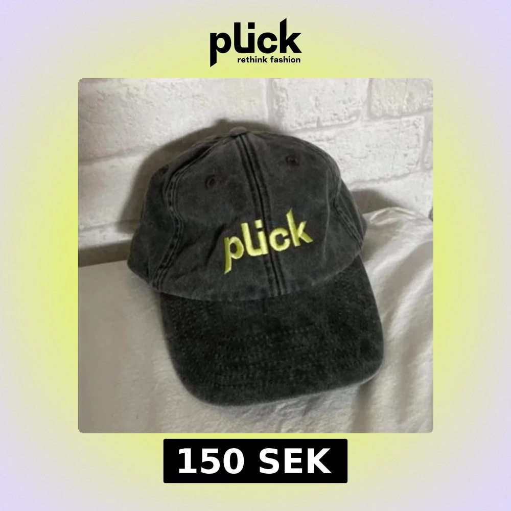 Snygg svart keps med justerbart spänne och broderad gul text 'plick' framtill. Perfekt för en avslappnad stil. En av få plickkepsar, aldrig använd