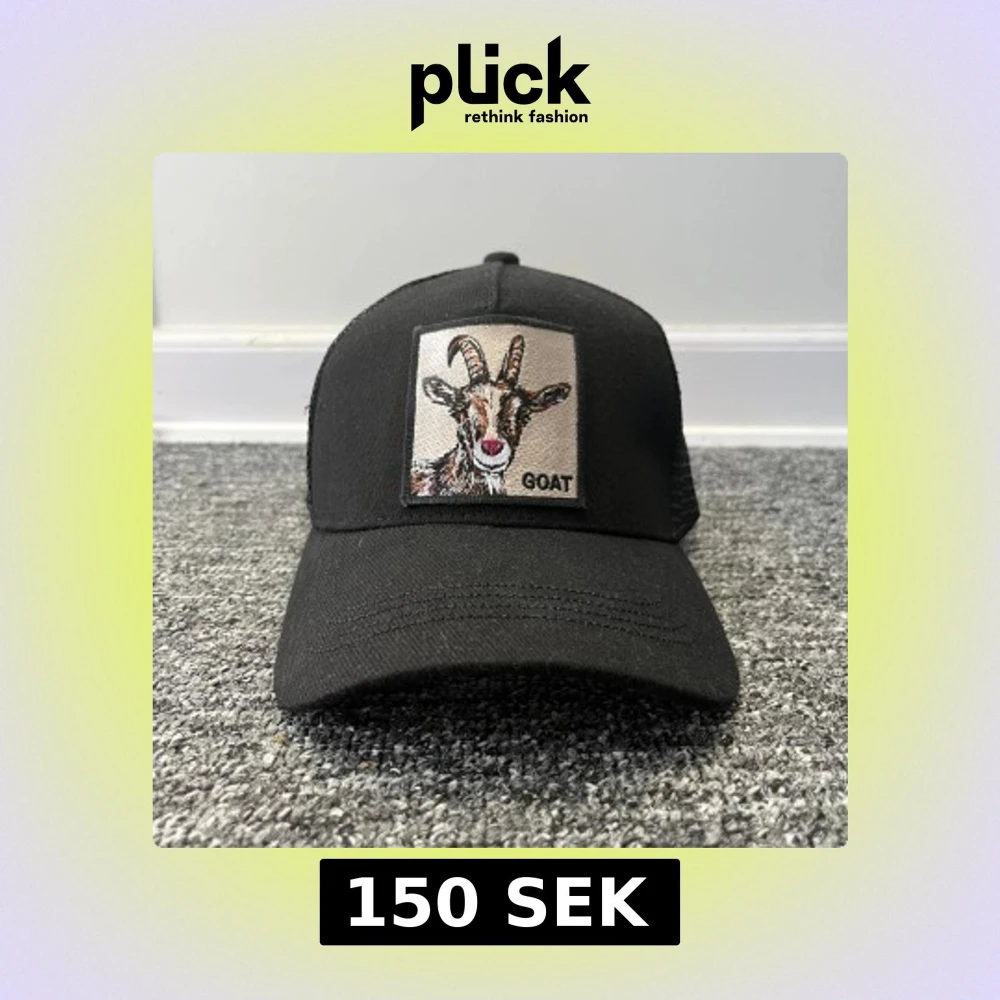 Snygg svart keps med ett broderat getmotiv på framsidan. Kepsen har en klassisk design med nätpaneler på baksidan för extra ventilation. Perfekt för en avslappnad stil.