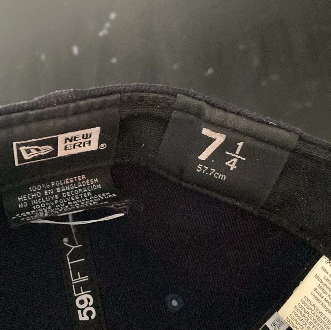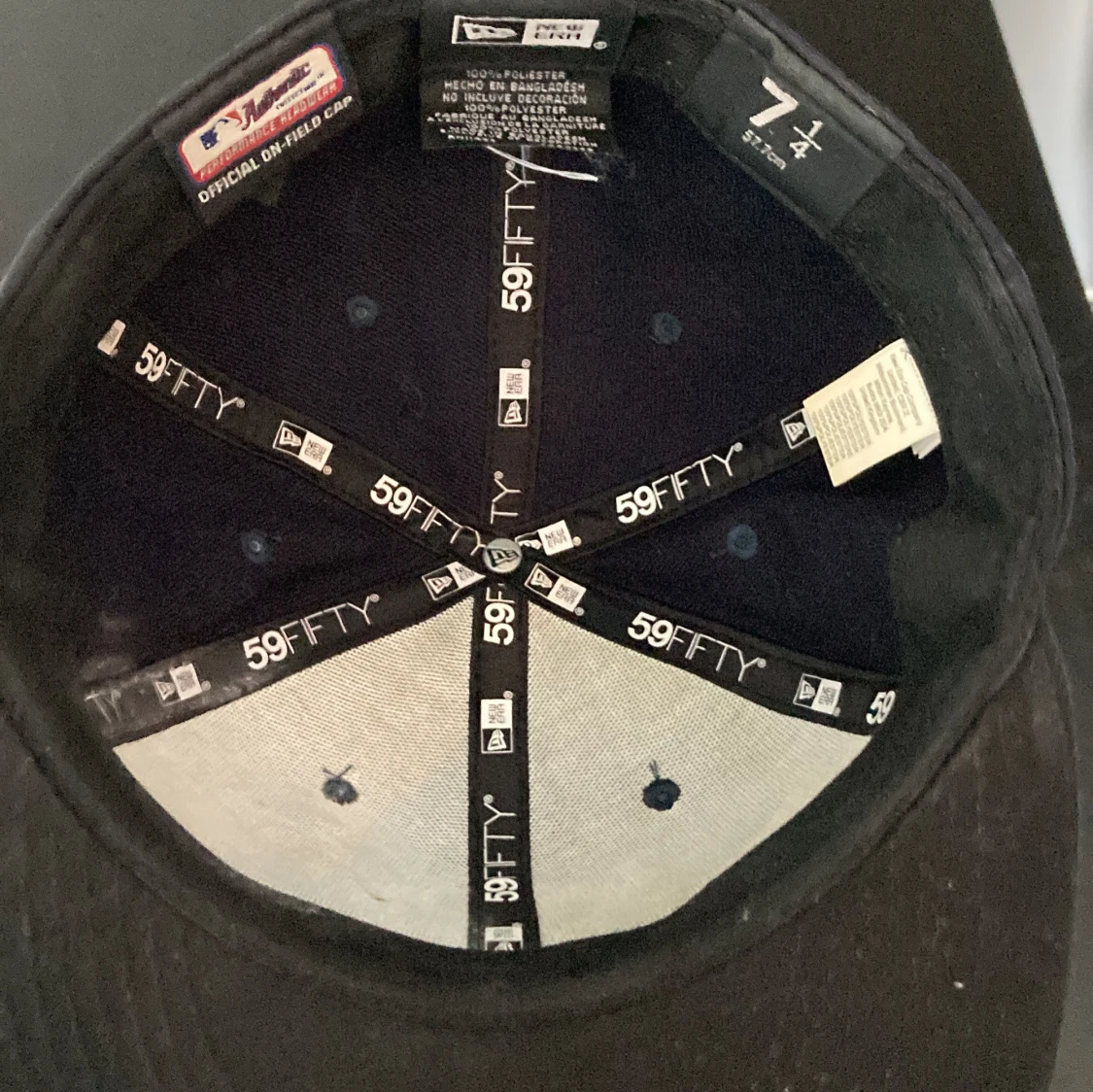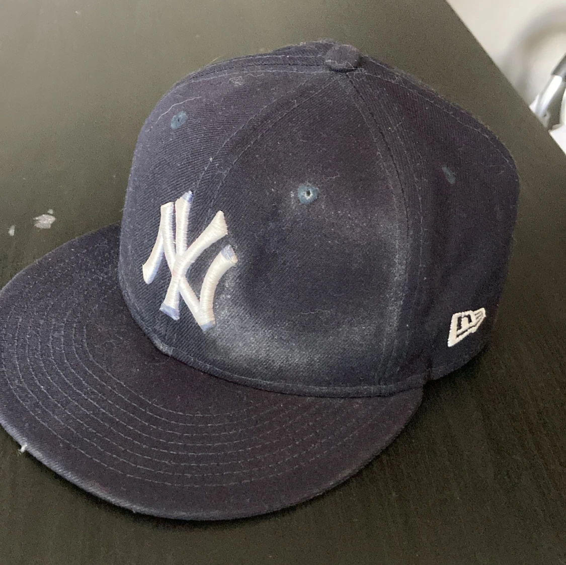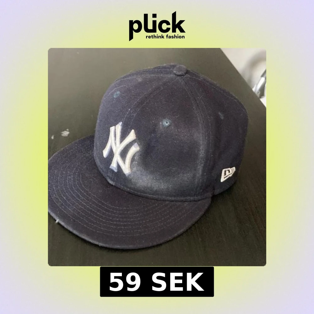 Säljer en klassisk mörkblå New York Yankees keps från New Era, modell 59FIFTY. Kepsen har broderad Yankees-logga framtill och New Era-logga på sidan. Tillverkad i 100% polyester med rak skärm och stängd baksida. Perfekt för dig som gillar sportig streetstyle. (St. 57,7cm)