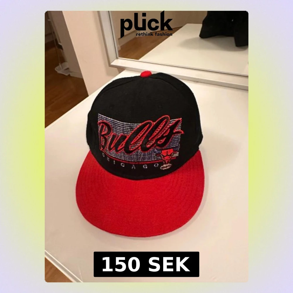 Säljer en snygg snapback-keps med broderad logga och text framtill. Kepsen är svart med röd skärm och röd knapp på toppen. Perfekt för dig som gillar basket och streetwear.