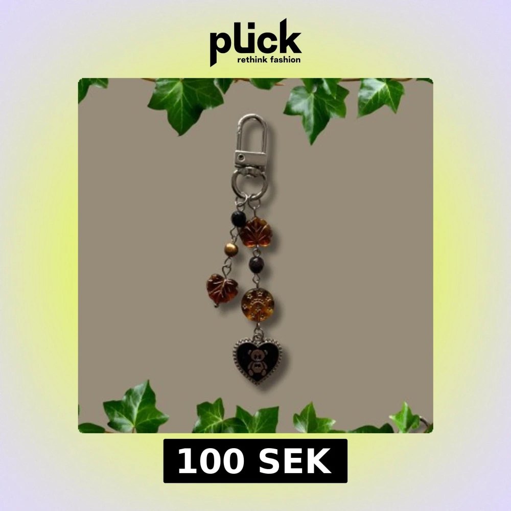 Höstig keychain, habdgjord med tjeckiska glaspärlor, en upcycled sötvattenpärla och en hjärtformad berlock🖤🍁🍄 Går att sätta på väska exempelvis :)