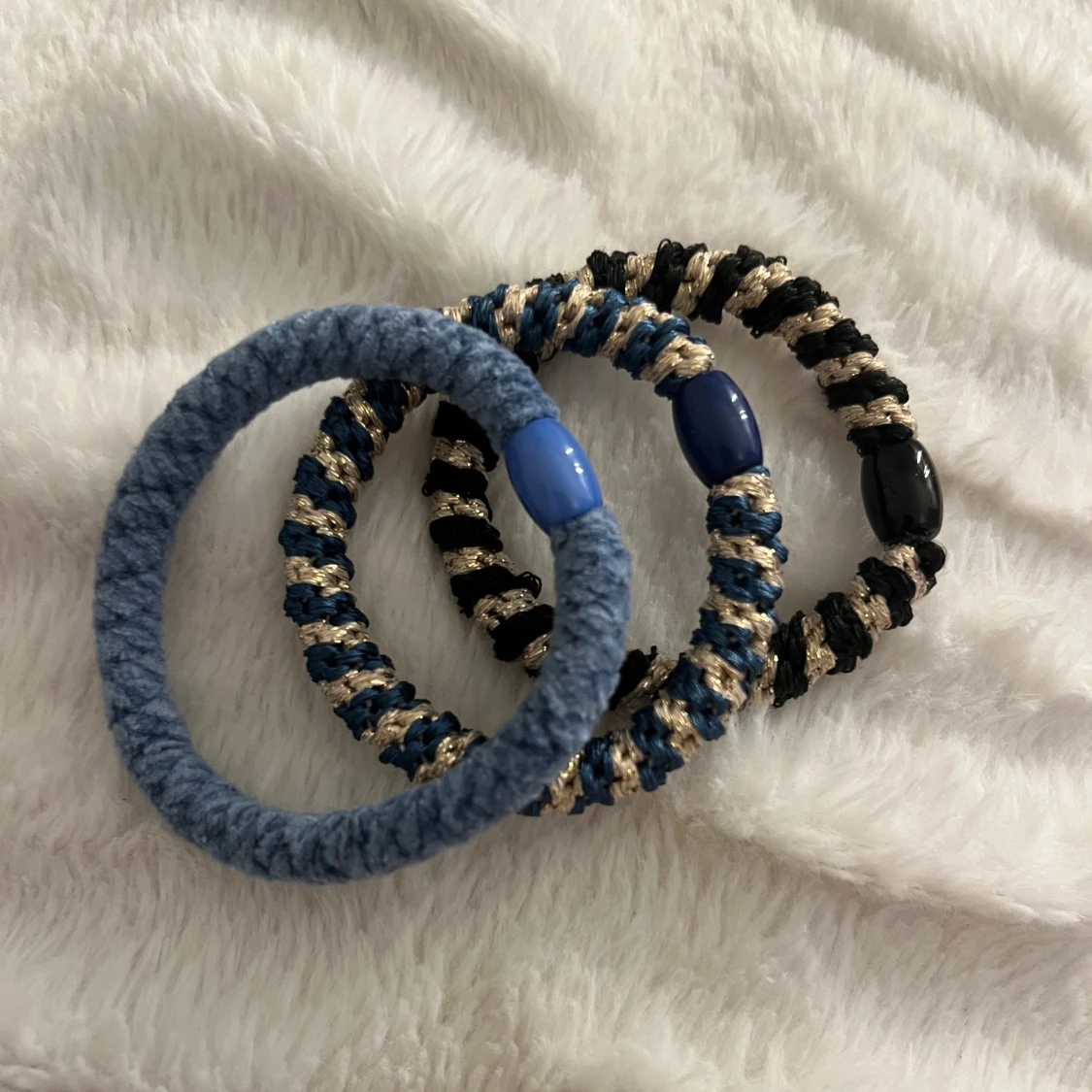Säljer dessa supersnygga kknekkis som både passar att ha i håret som hårsnodd, men även som en snygg accessoar på handleden. Säljer för att de inte kommer till användning! Säljer alla tre för 55kr och 20kr per hårsnodd😇🌸