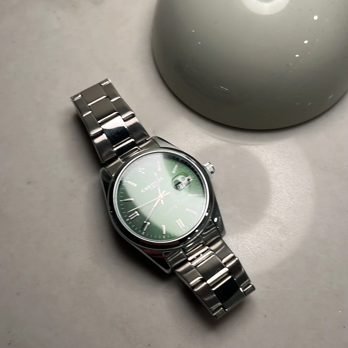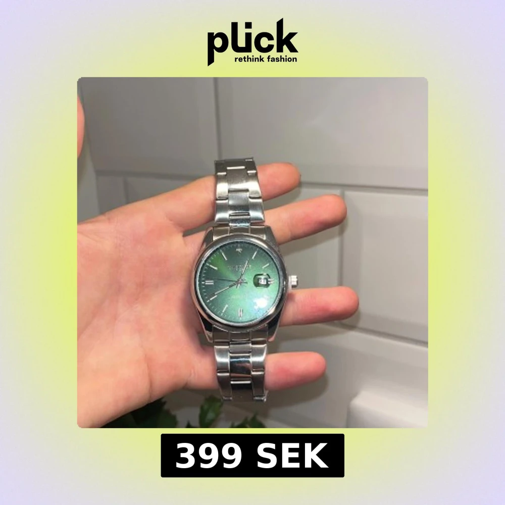 Fet klocka i silver med grön urtavla i 10/10 skick pris kan sjunka