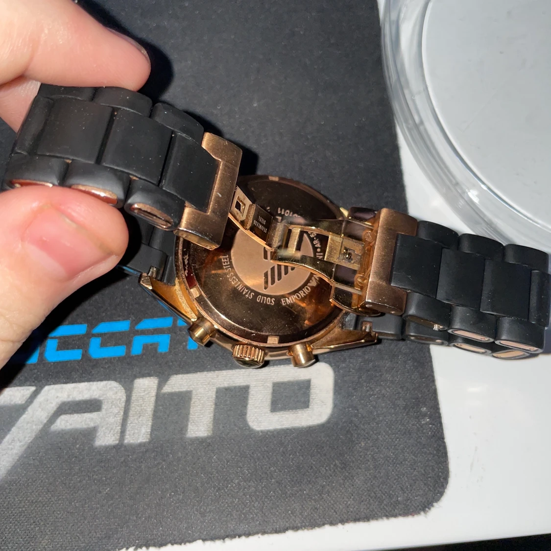 Riktigt stilig och fina färger helt äkta klocka. Säljer denna då den är lite för stor. Den är inte skadat och allt funkar. Köpt för 3600