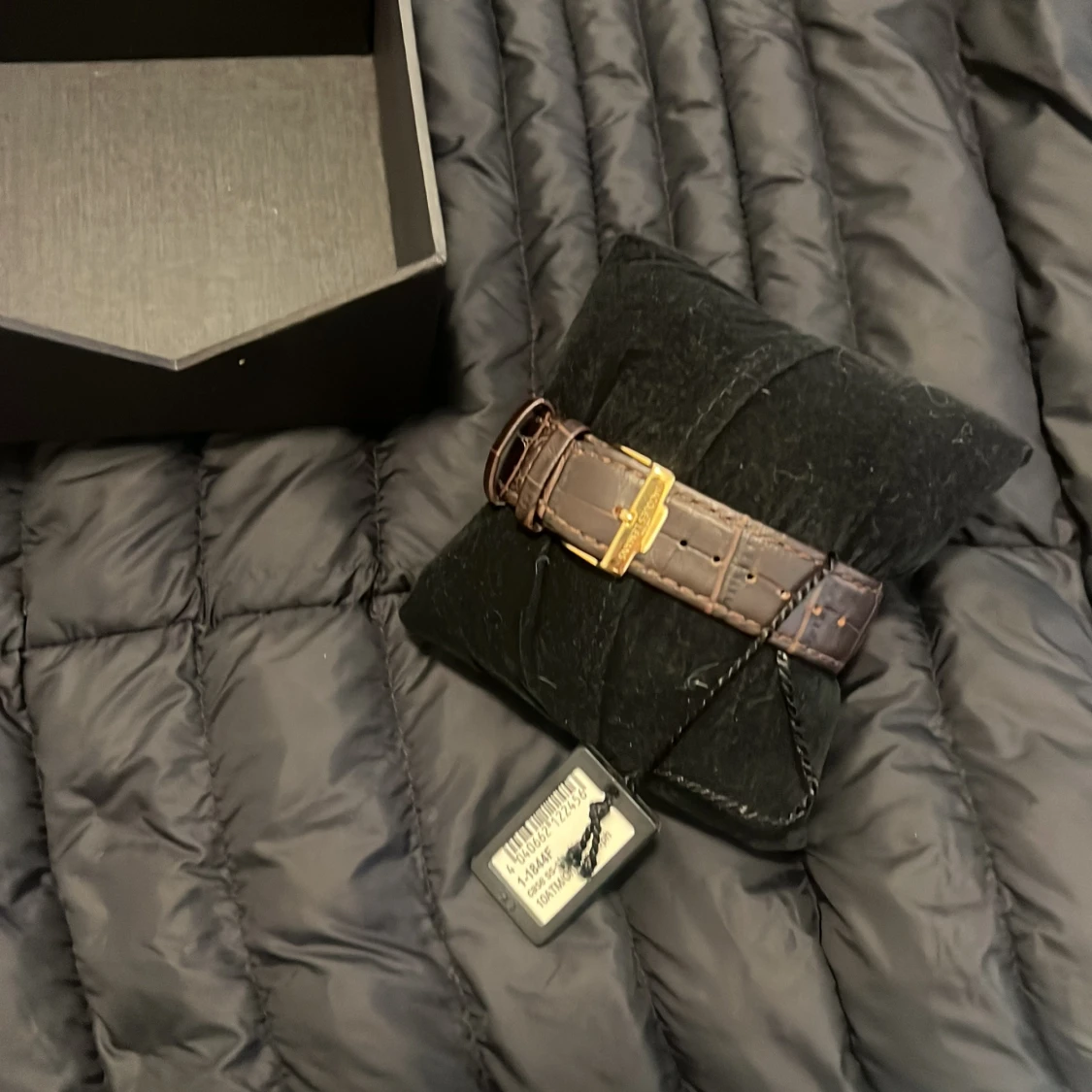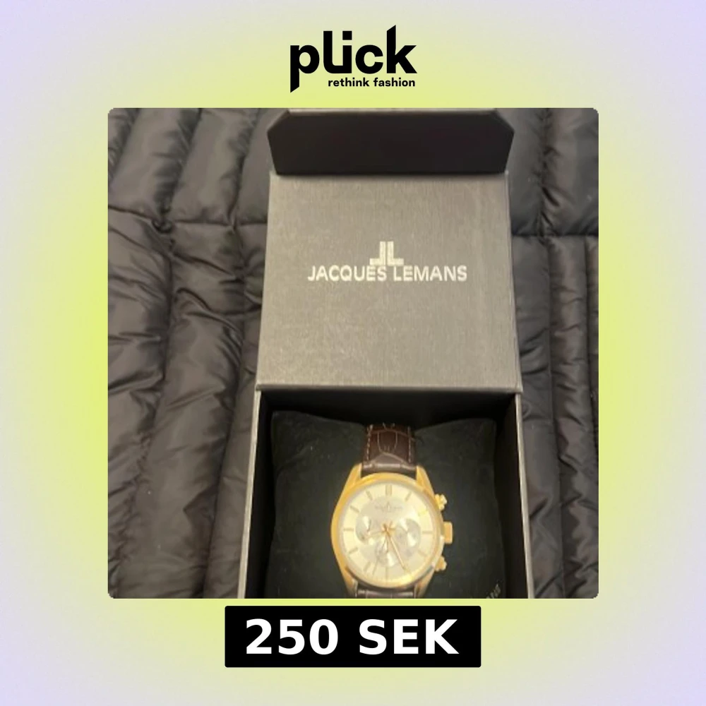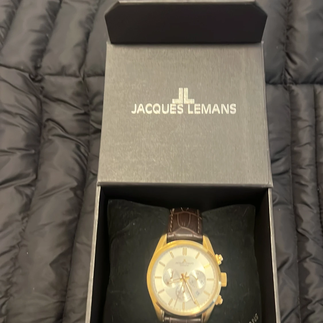 Stilren klocka från Jacques Lemans med guldig boett, silverfärgad urtavla och brunt läderarmband med krokodilstruktur. Klockan har tre subdials och datumvisning, perfekt för dig som gillar klassisk och lyxig design. Perfekt som en present och aden är aldrig använd.