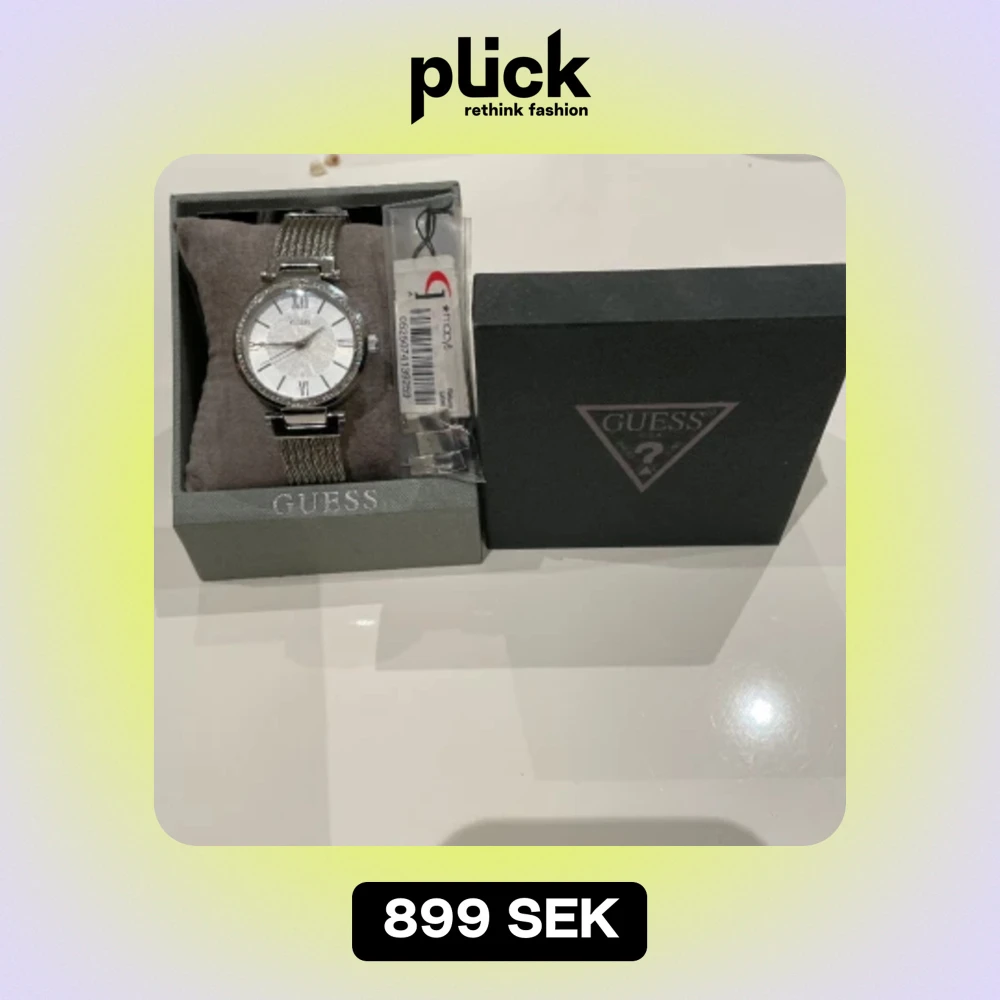 En silver klocka från GUESS. Den har 10års garanti och köptes för 2 år sedan. Köpte den för 125$ i USA i butiken Macys. Den har skjusterbara förlängnings delar. Kommer med box och tagg, samt klockkudde. Ett bra pris för en sådan fin klocka.💨💥☀️🔝