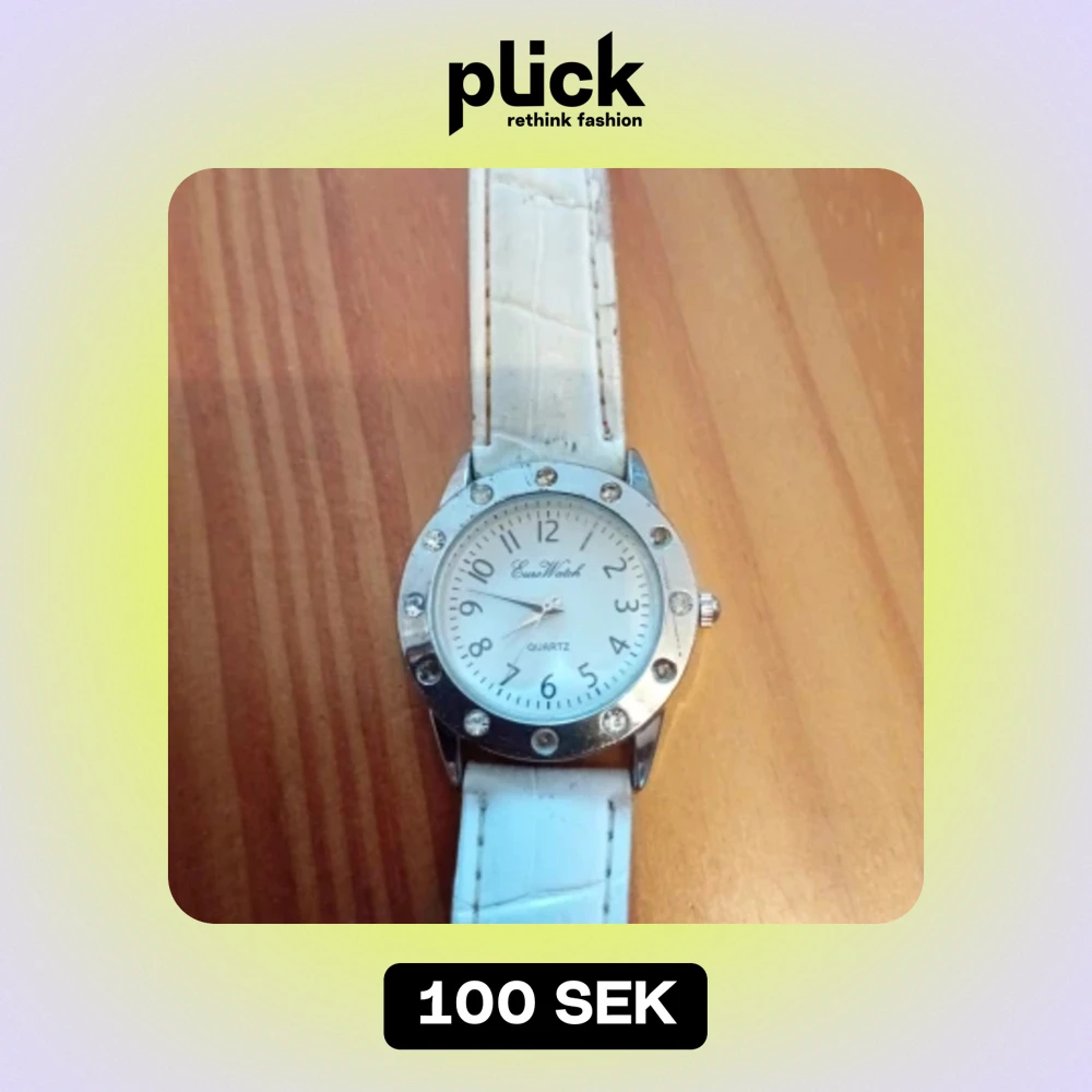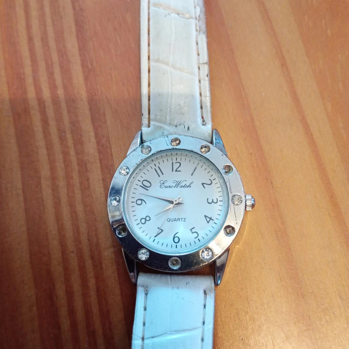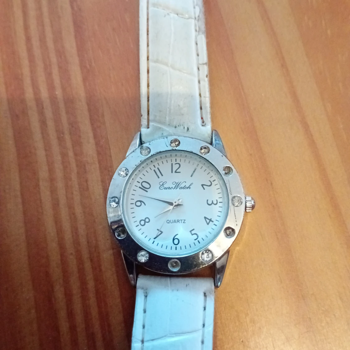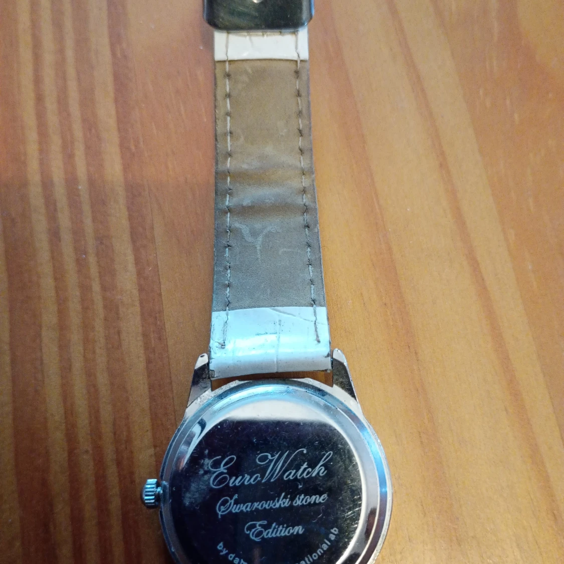 Klocka med ram och vita stenar runtomkring.märke Euro Watch.nytt batteri behövs o rem.
