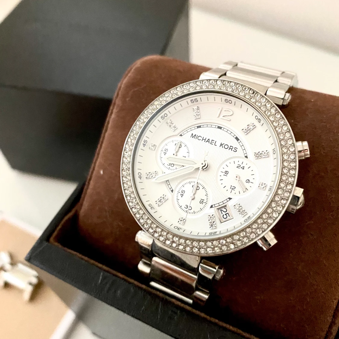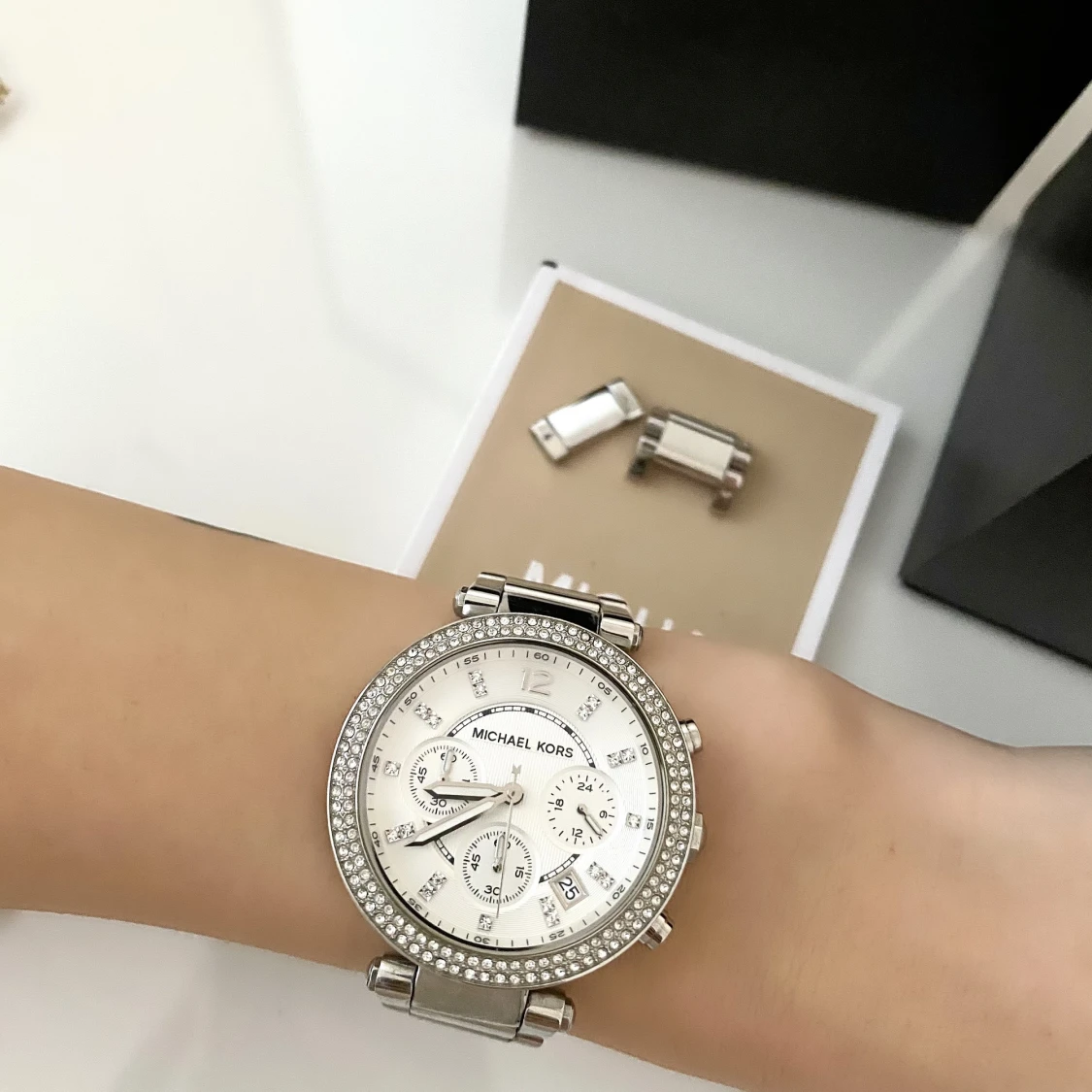Michael Kors klocka som är sparsamt använd. Modellen är MK-5353. Datum, stoppur och kronograf finns. Originalbox och extra länkar medföljer. Nypris låg på ca 2600kr Säljes pga att den inte används längre Garanterat äkta! 😊