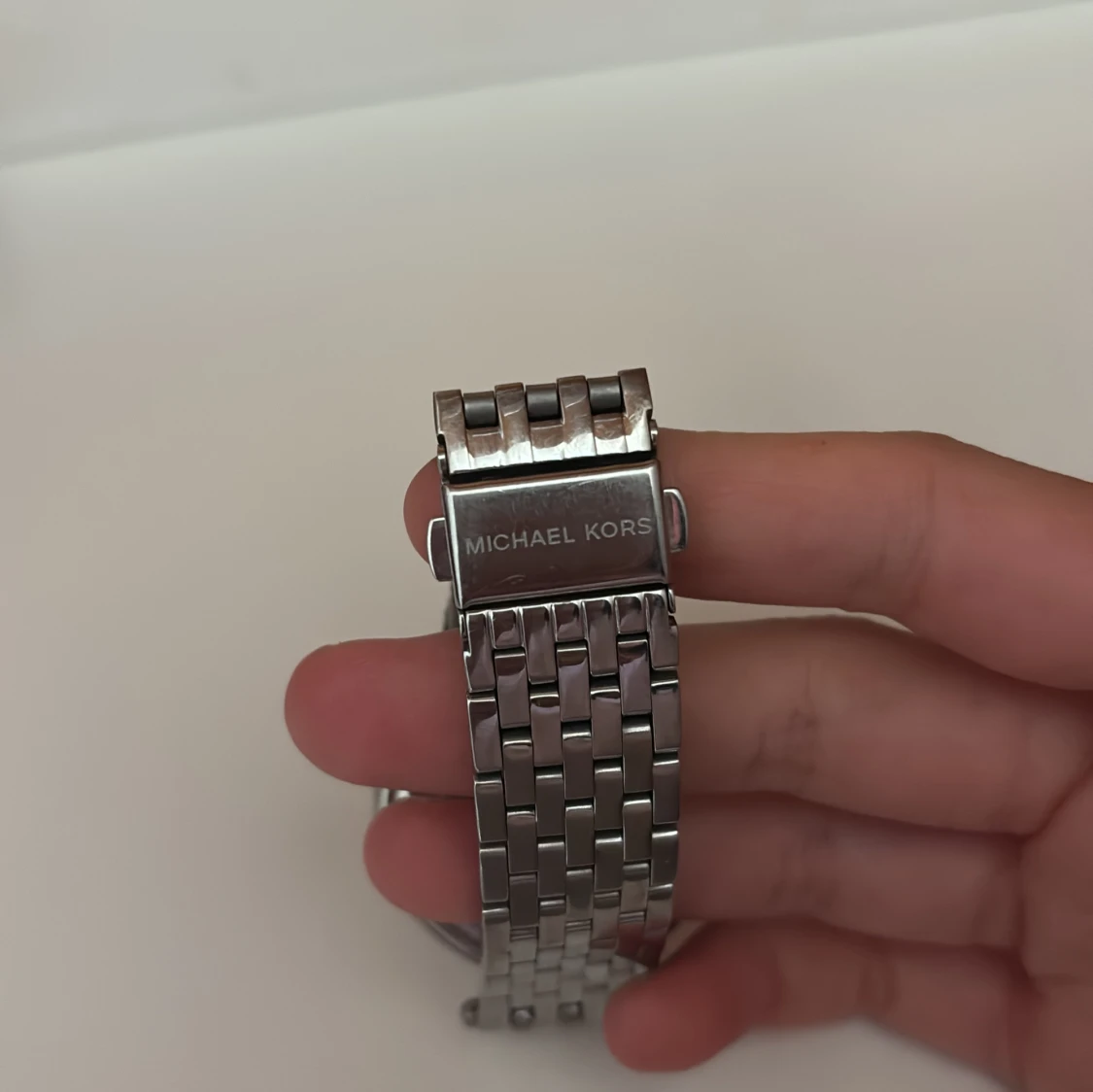 Snygg och stilren klocka från Michael Kors i silverfärgat metall med glittrande stenar runt urtavlan. Rund urtavla med minimalistiska markeringar och länkarmband i blankt stål. Perfekt accessoar för dig som gillar bling och klassisk design.