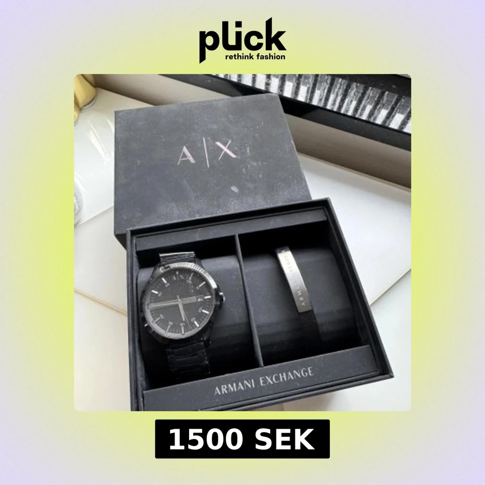 Snygg svart klocka från Armani Exchange med matchande armband. Klockan har en stilren design med svart urtavla och silverdetaljer. Perfekt för en elegant look. Helt ny säljs för 1500