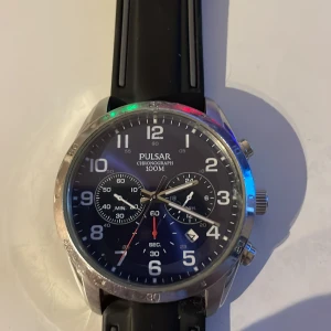 Säljer nu min pulsar chronograph 100m som har ett gummiarmband. Klockan är lite deppig där och där så går ut för ett bra pris.