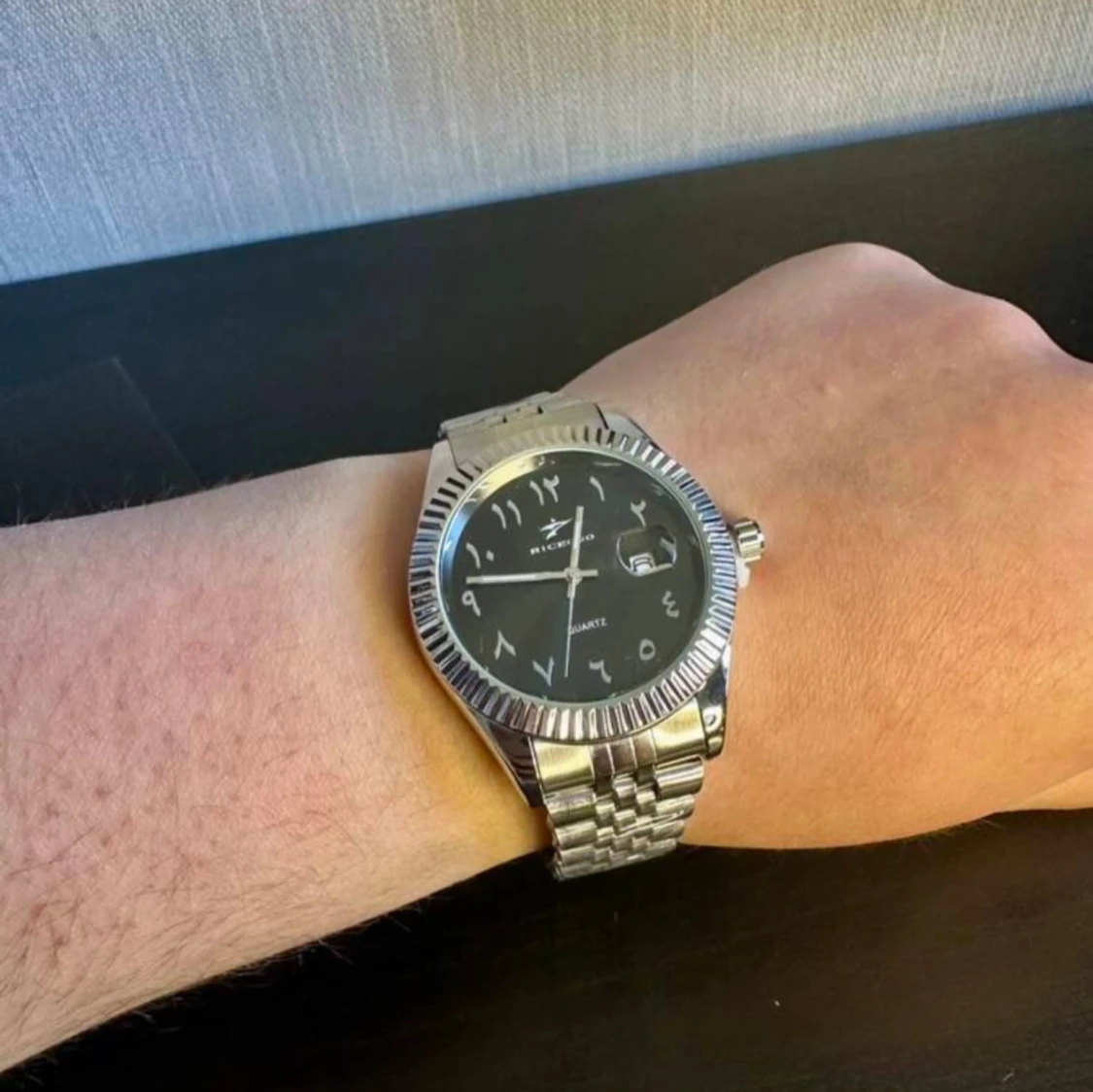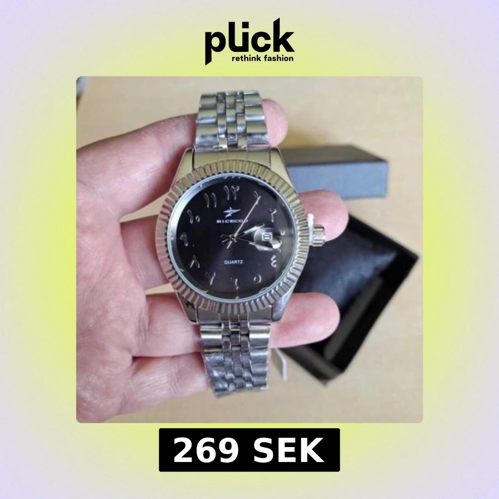En silver klocka med svart och urtavla med arabiska siffror och klockan är en MOD, väldigt fint skick, priset kan diskuteras och byten tas emot.