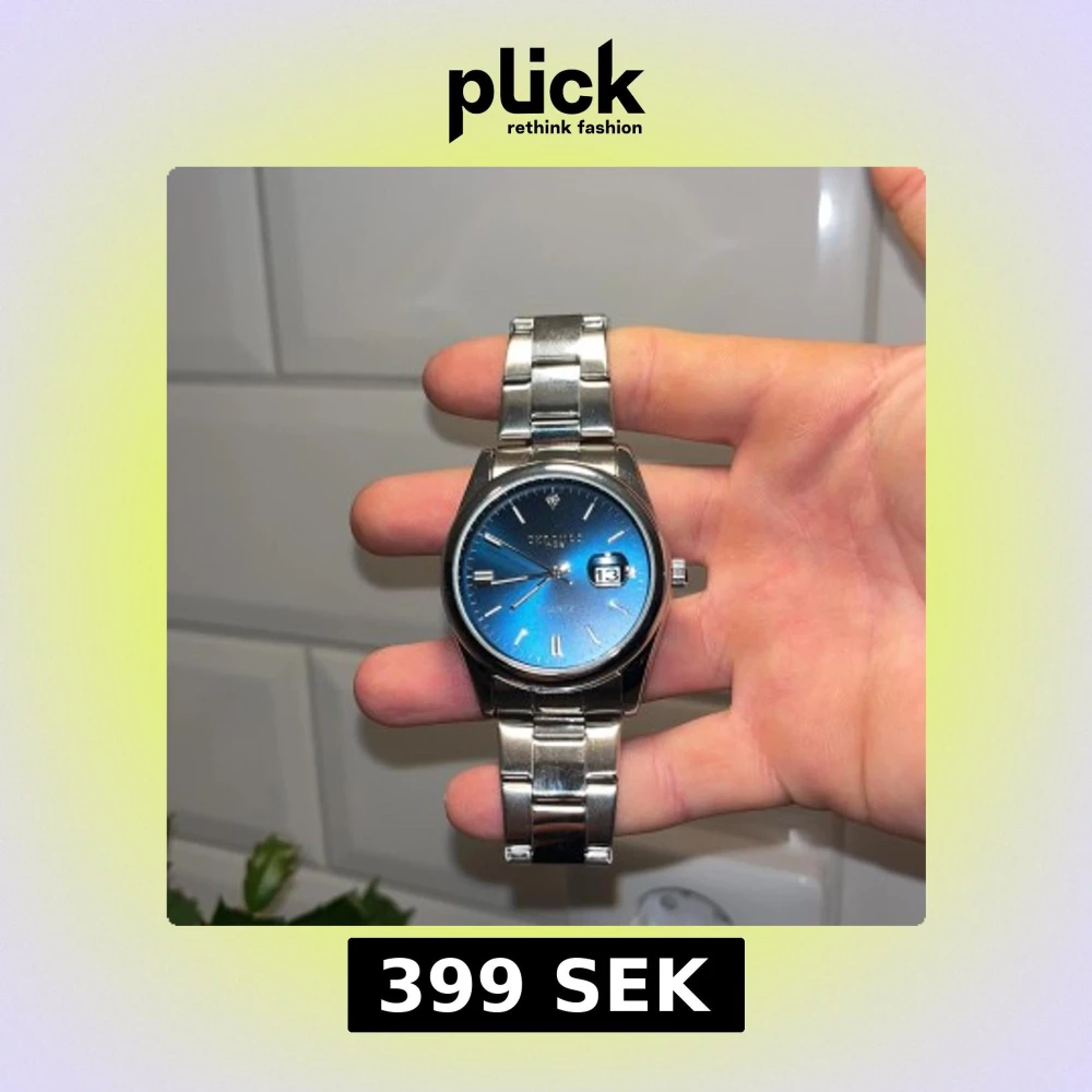 Snygg silvrig klocka med blå urtavla i utmärkt skick 10/10 priset kan möjligtvis sjunka lite