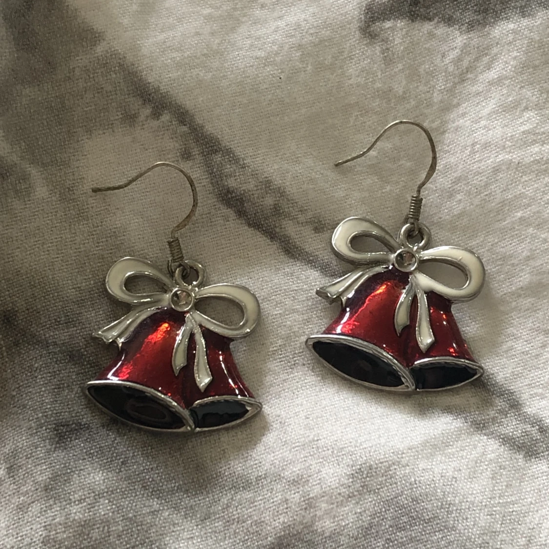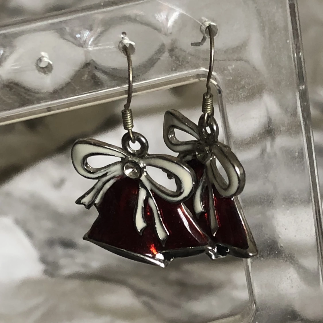 Silver och Röda ”jul” örhängen. Jättesöta klockor med vit roset. Androg använda och i bra skick