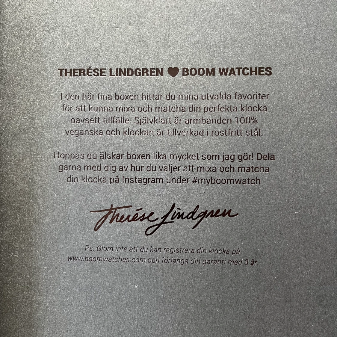 En oanvänd klocka från BOOM watches, designad av Therese Lindgren.