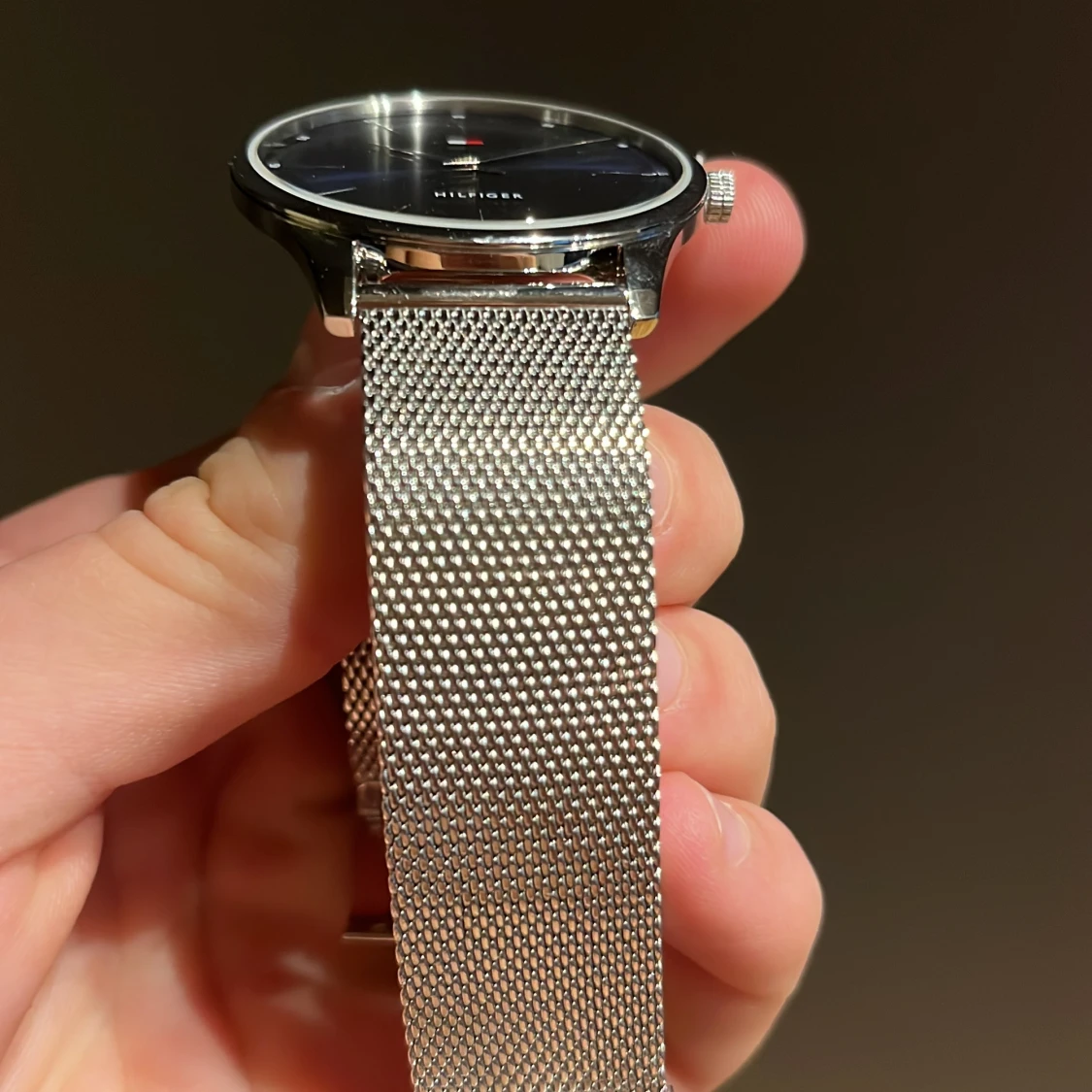 Helt ny Tommy Hilfiger oanvänd. mått: Diameter 40 mm Tjocklek 5 mm Armbandstyp Mesh Armbandsfärg Silver Armbandsbredd 20 mm Armbandsomkrets 14-22 cm