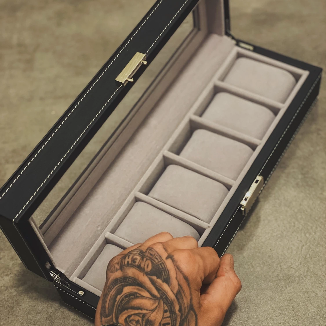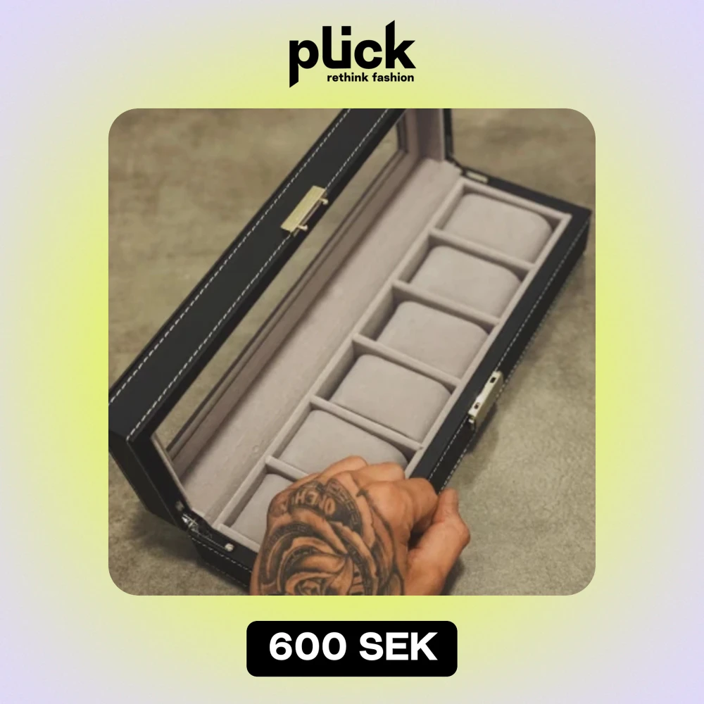 Klocklåda i läder med 6 platser. Aldrig använd bara öppnad. [Ny skick]