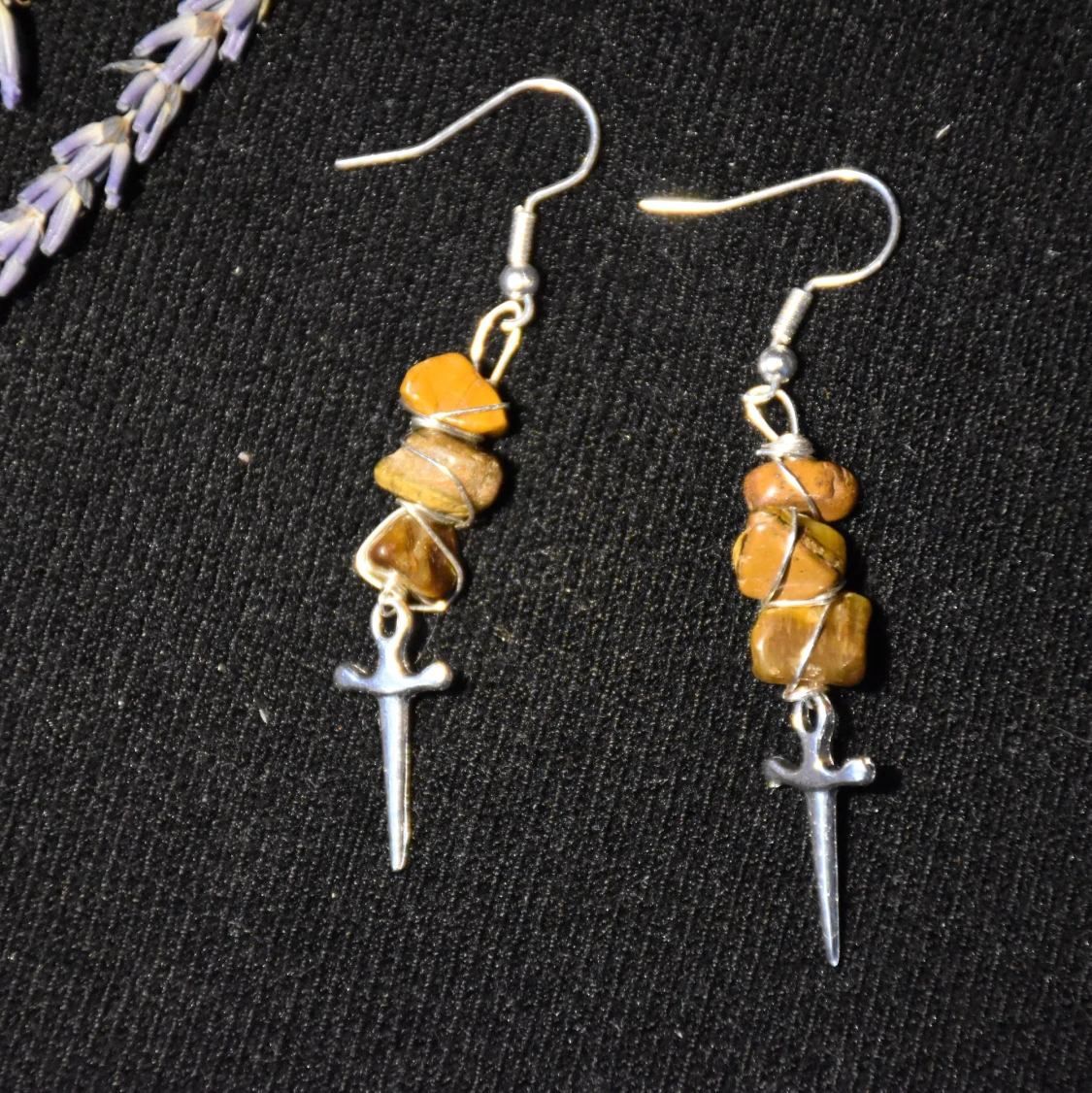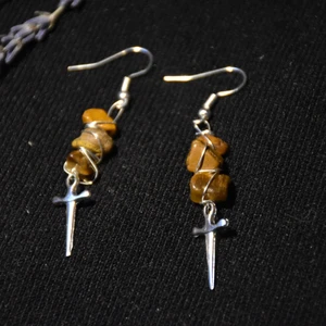 Örhängen med äkta tigeröga och dolkberlocker.