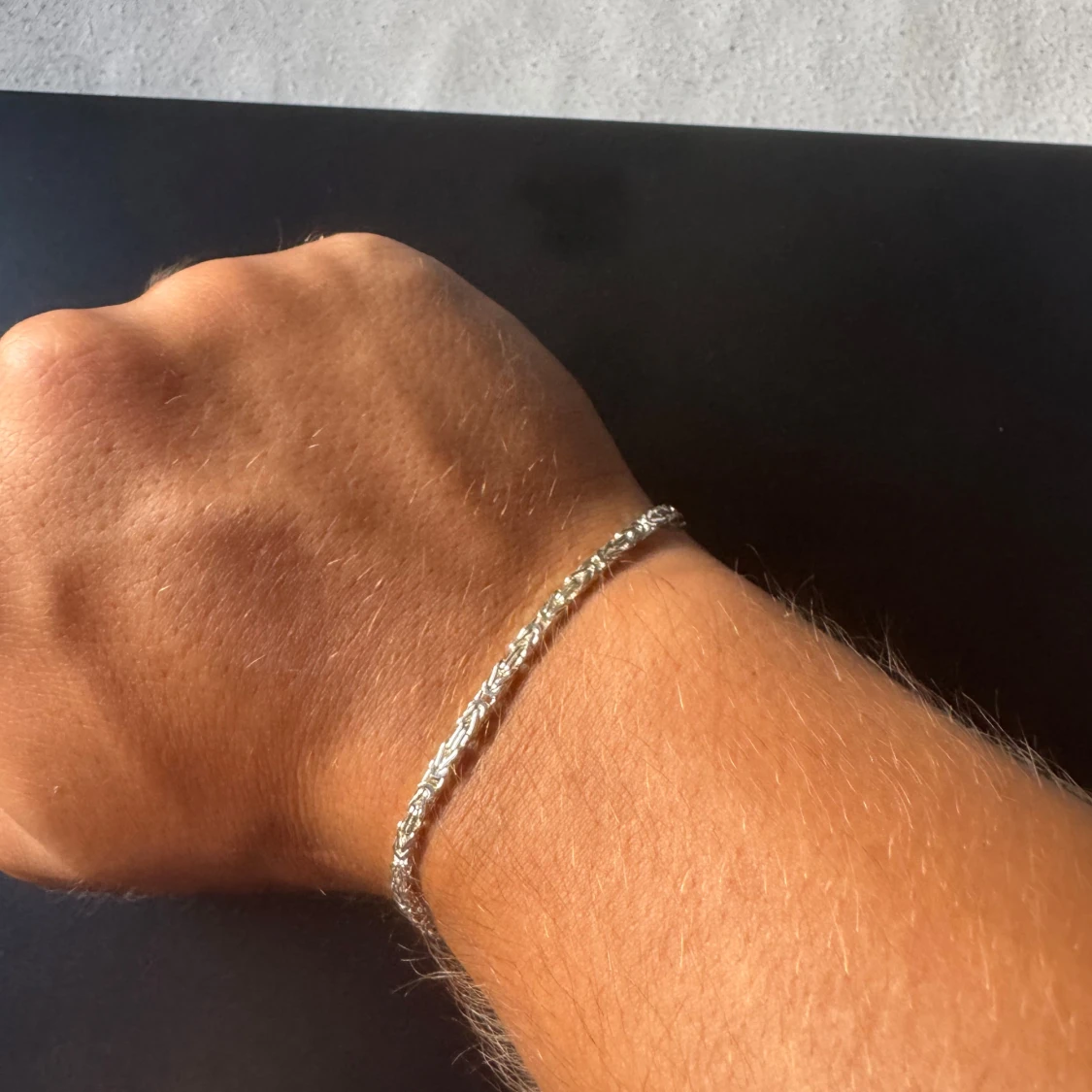 Nytt armband i äkta 925 silver från Kejsar. Kedjan har en flätad design och smidig karbinhake. Kommer i original ask. Perfekt accessoar för en clean och stilren look. 4mm, 18 cm. Nypris 1199 sek.