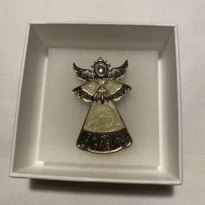 Guldig ängel pin med månsten i mitten och fina mönster Ganska stor Inte äkta guld
