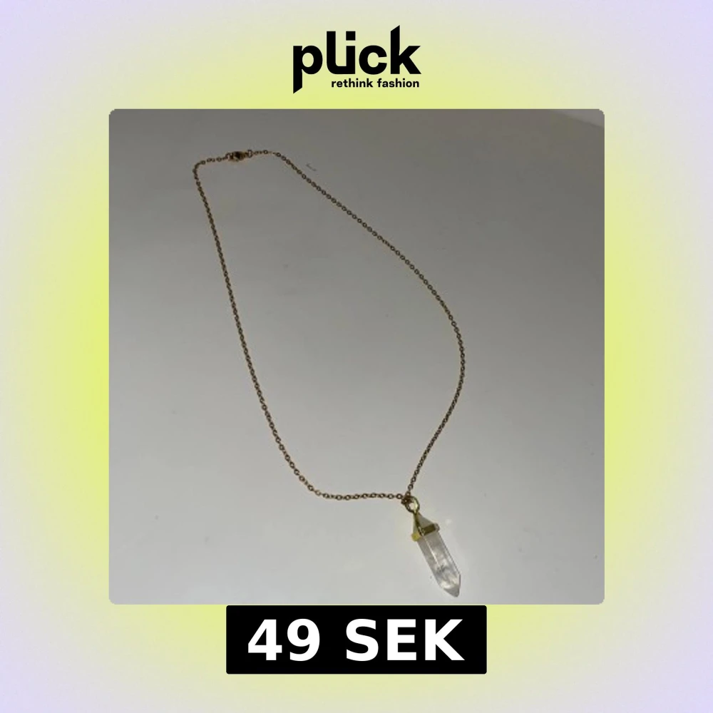 Fejk guld, kristall halsband tror det är en bergs kristall. Köpte för 79kr säljer för 50kr + frakt.