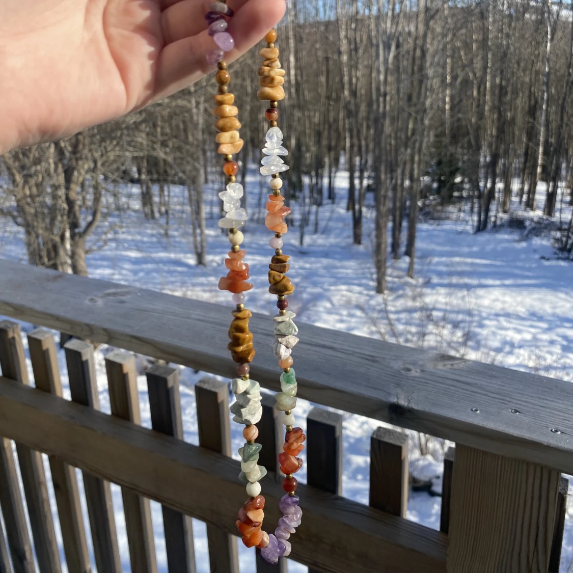 Två stycken kristallhalsband. Kan säljas separat eller tillsammans. Köpt second hand men mycket bra skick. Äkta kristallchips. 70kr styck eller båda för 130kr