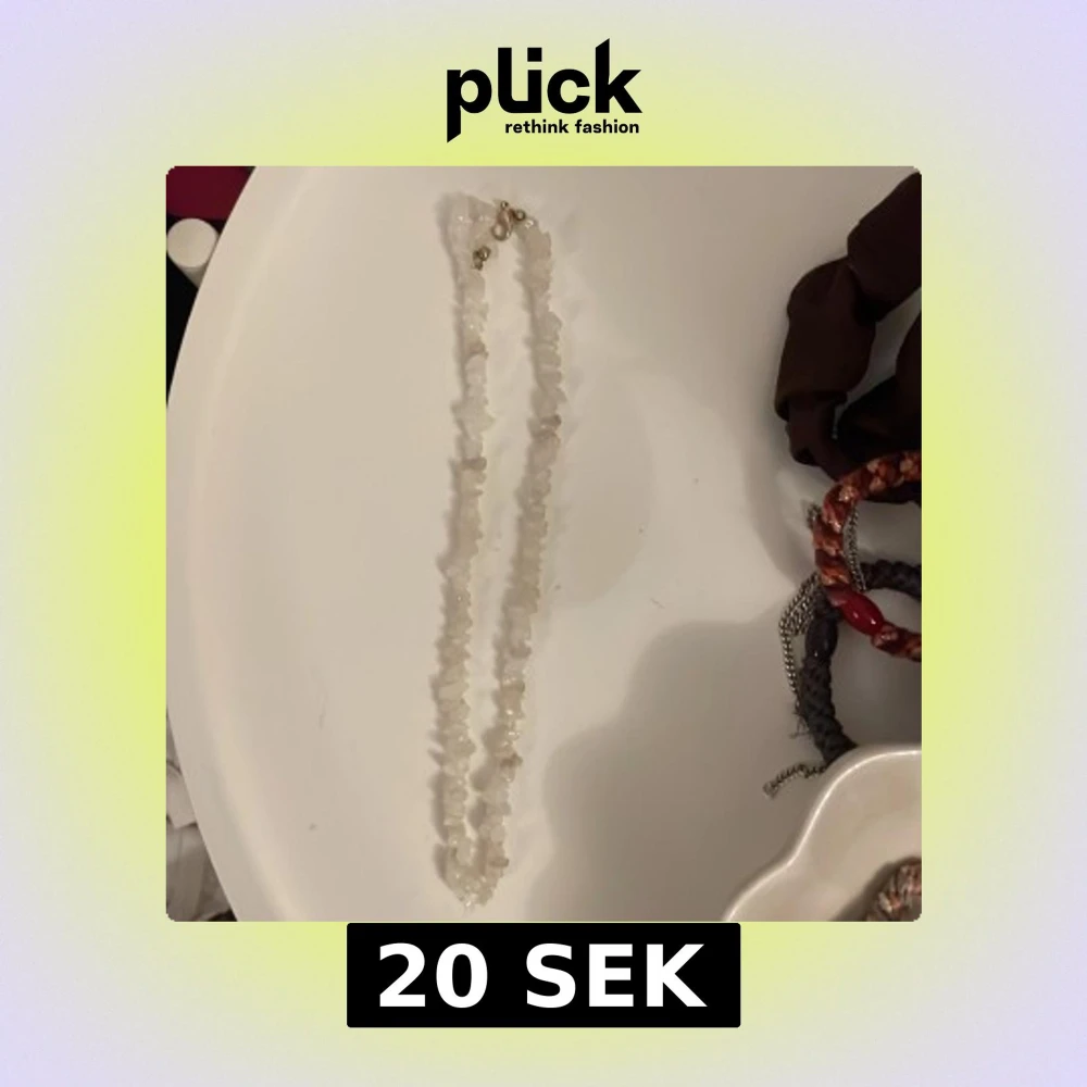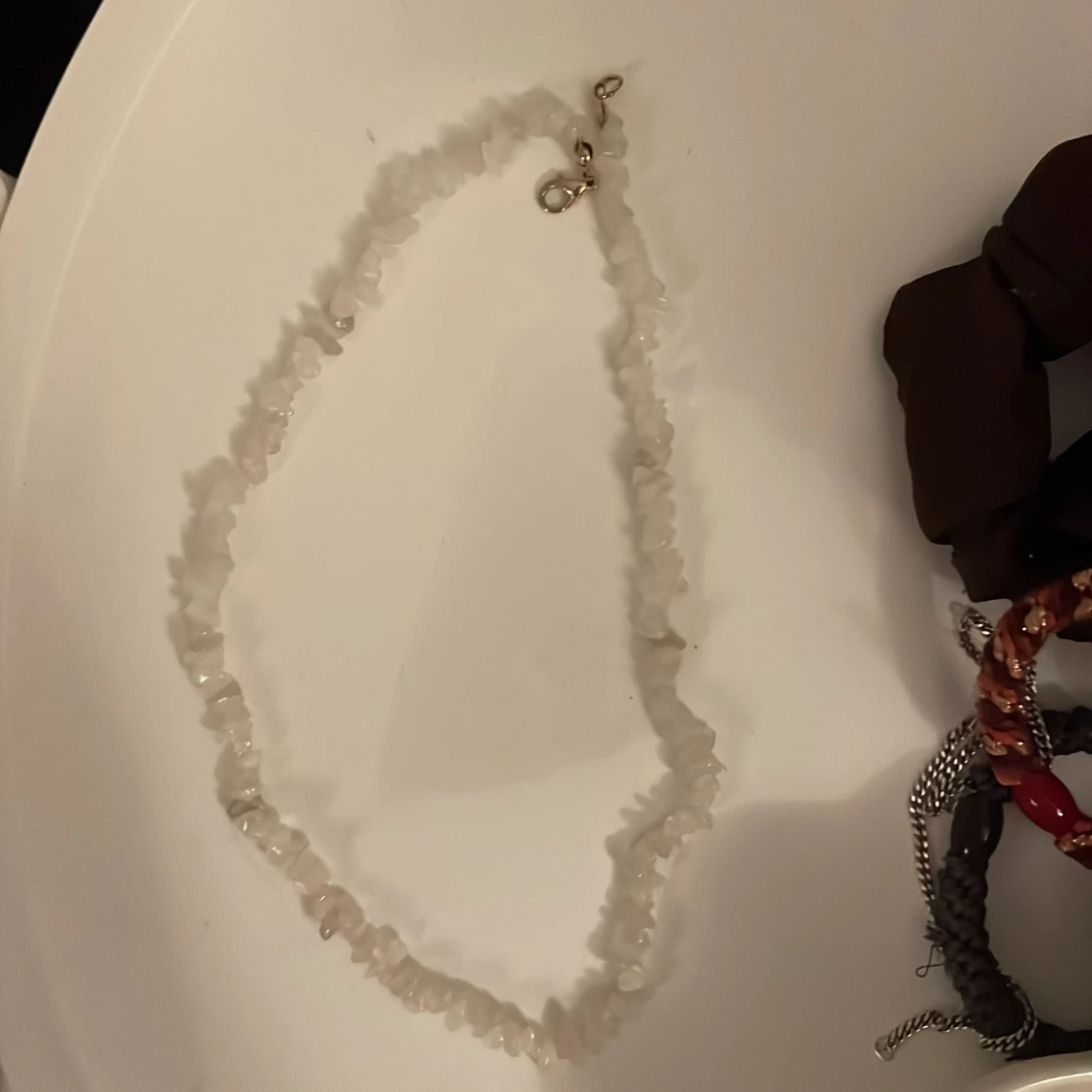 Ett snyggt halsband med oregelbundna vita stenar som ger en naturlig och unik känsla. Halsbandet har ett litet guldfärgat lås som detalj. Perfekt för dig som gillar kristallvibbar och vill ha något som sticker ut.