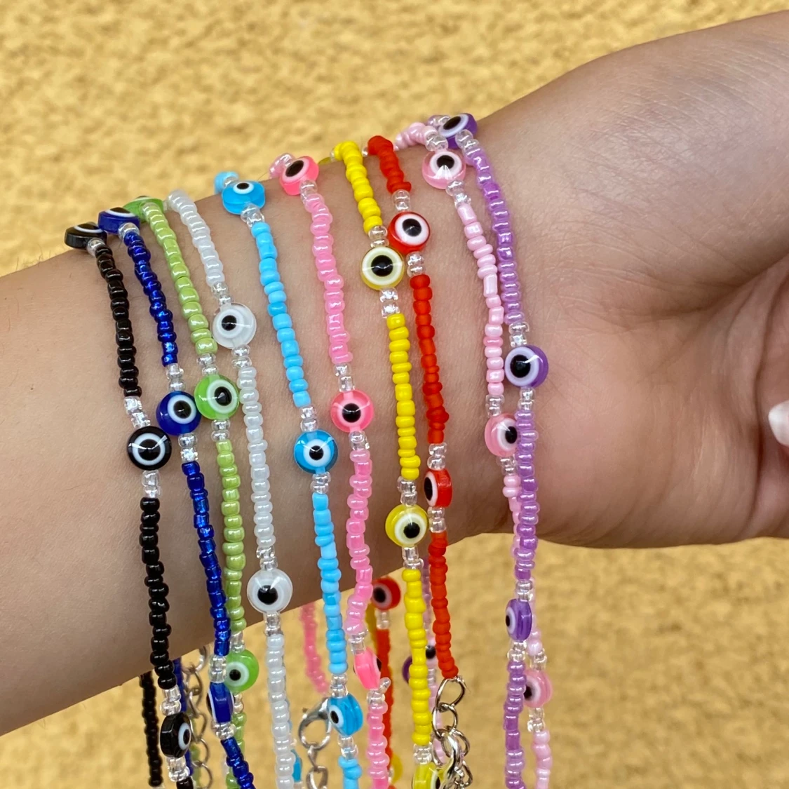 Evil eye Kollektion 𧿠* 35kr per halsband exklusive frakt! * Du vÀljer lÀngden sjÀlv * Flera olika fÀrger * Vill du ha ett mix-fÀrgat halsband? GÀrna! Du vÀljer precis allt. * Standard lÀngd 40 cm * + 1cm = +2 kr