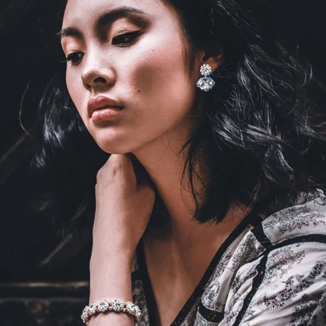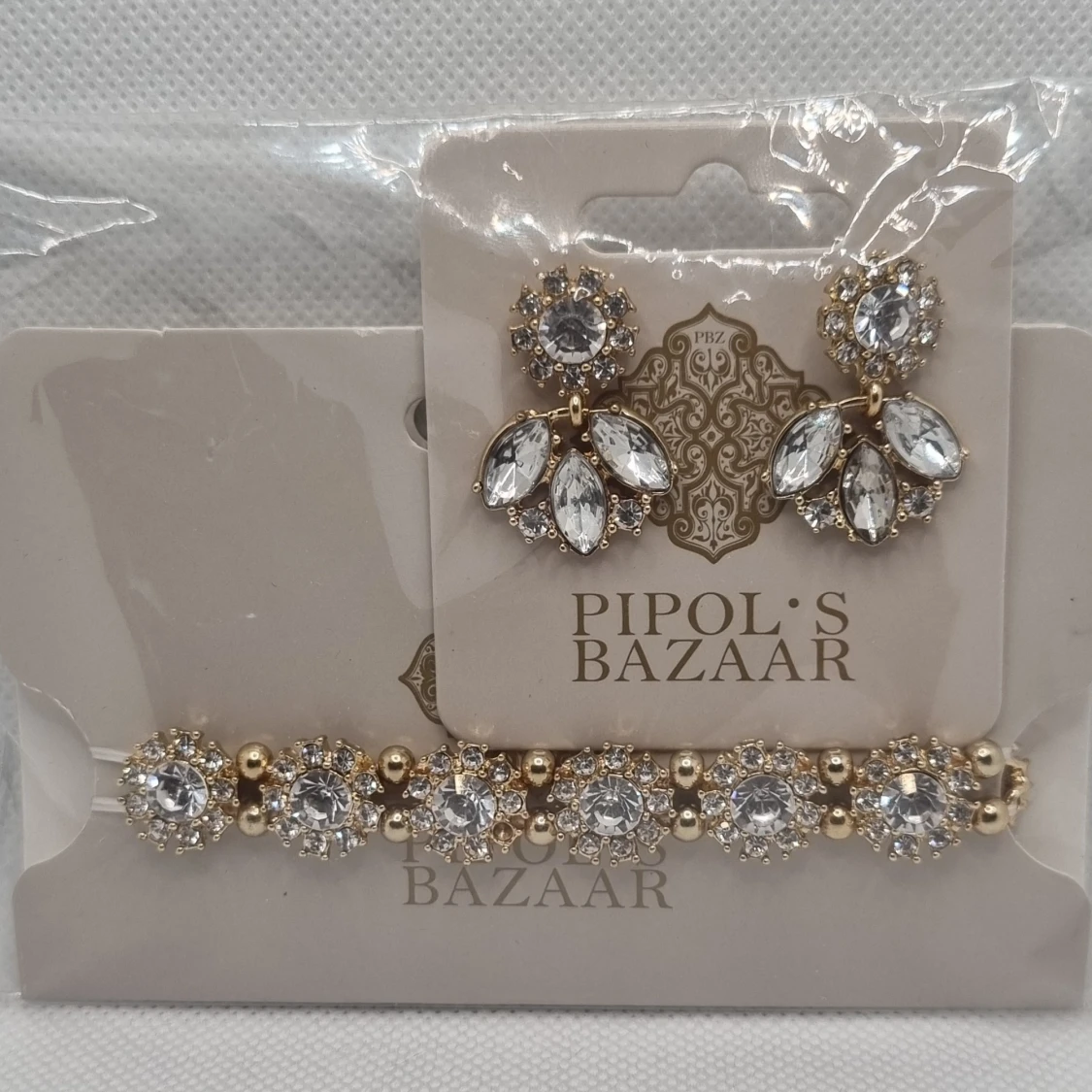 Pipol's Bazaar Patrice armband och örhängen set boho chich strass guldfärgad metall