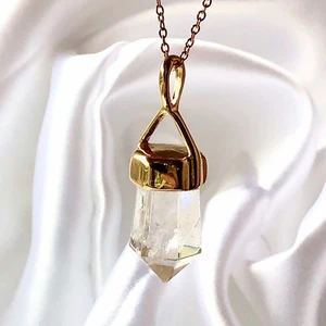 Vackert halsband i stainless steel och bergkristall, 45-5 cm lång kedja