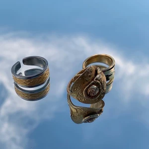 Ringar som jag tillverkat själv i pläterat guld. Många fina detaljer och en ros som sveper runt ringen. Finns just nu endast i storlek från 64mm till 70 mm i omkrets✨ Kan frakta mot kostnad eller mötas upp i sthlm