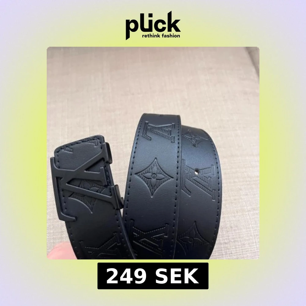 L–bälte i svart med tonat monogram och svart spänne. Stilren och diskret design. Passar både herr och dam. Storlek 110 cm
