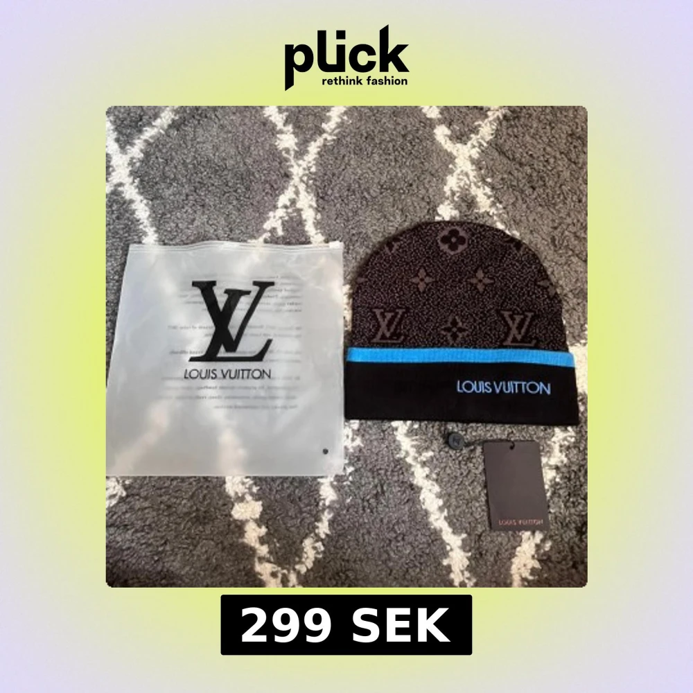 Exklusiv mössa från L i grått och svart med klassiskt L-monogram och blommönster. Mössan har en svart uppvikt kant med blå rand och broderad L-logga framtill. Tillverkad i mjukt stickat material, perfekt för kyliga dagar.