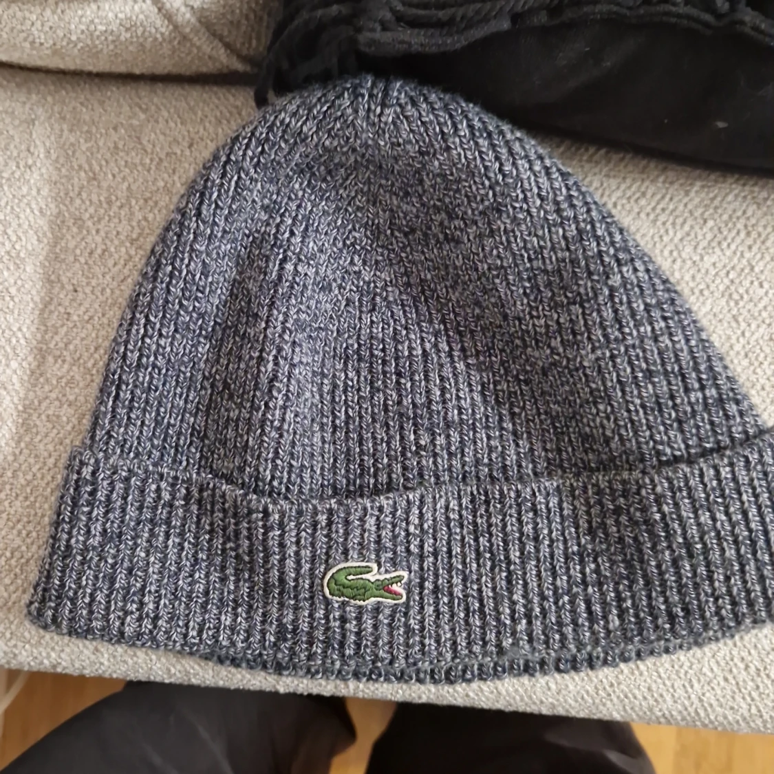 Used and a slight imperfection at the middle bottom on the beanie that you can see