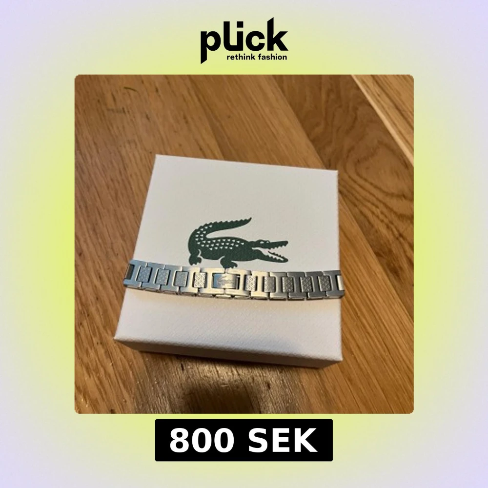 Stilrent armband från Lacoste i silverfärgad metall med rektangulära länkar och diskret Lacoste-logga på en av länkarna. Kommer i original ask och med vit tygpåse med dragsko, perfekt för att ge bort eller behålla själv. Passar killar tjejer pris kan diskuteras fraktar samma dag!