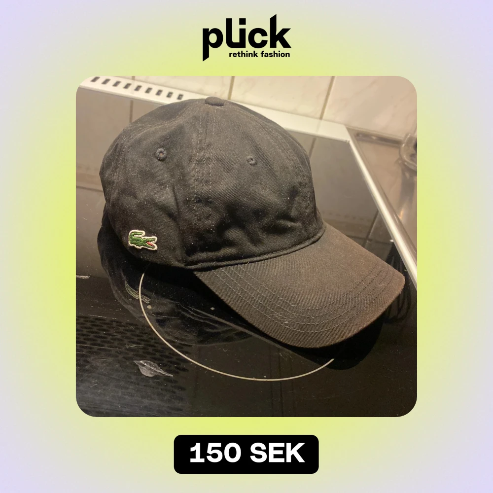 Säljer en stilren svart keps från Lacoste med den klassiska krokodilloggan på sidan. Kepsen har en justerbar rem i brunt läder baktill för perfekt passform. Perfekt för både vardag och sportiga aktiviteter. Passar till alla outfits! lite solblekt men annars gott skick!