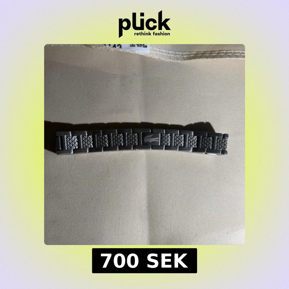 Säljer ett silverfärgat länkarmband från Lacoste med klassisk krokodil-logga på mittenlänken. Armbandet har en stilren design med texturerade detaljer på länkarna. Perfekt som utbytbar länk till din Lacoste-klocka. Oanvänd