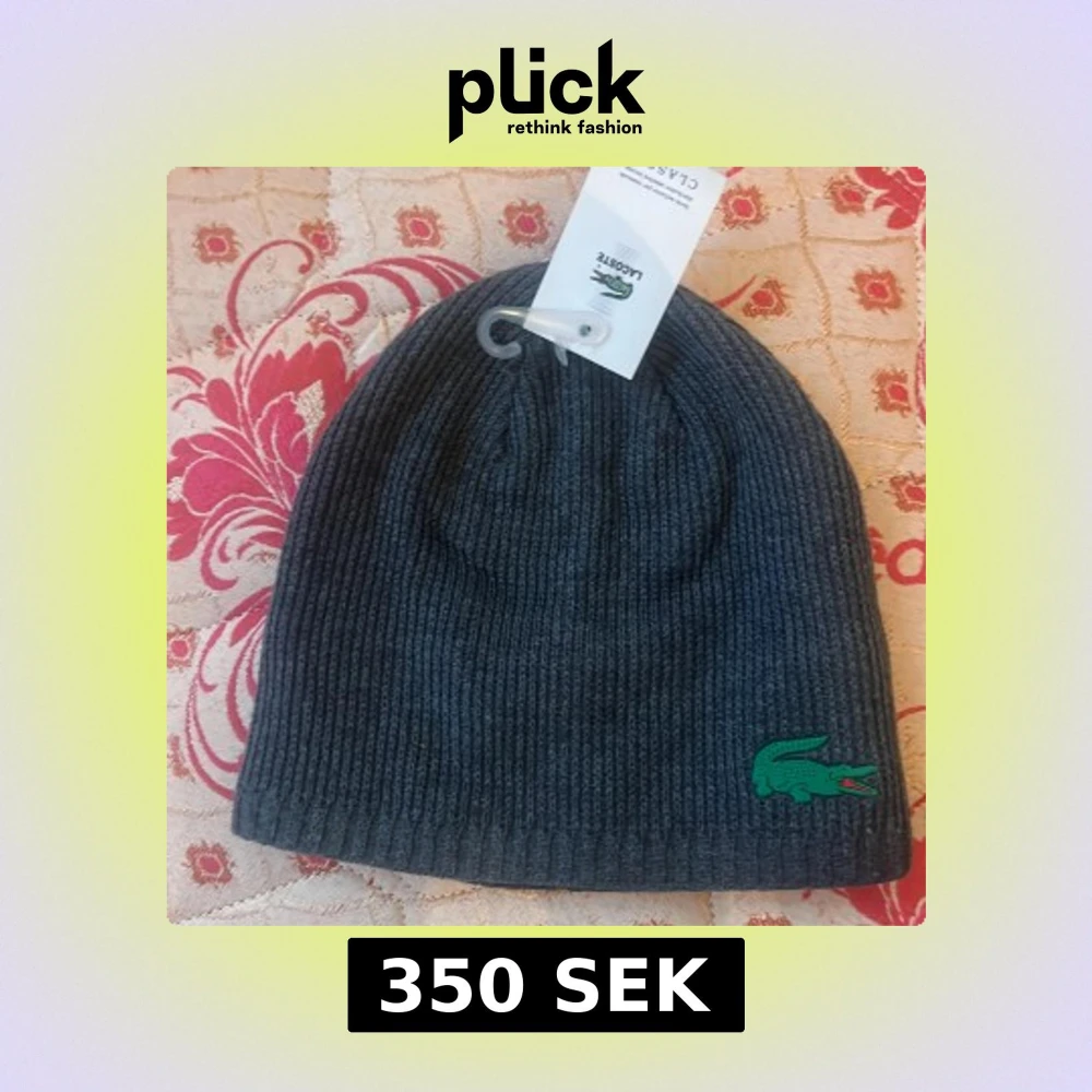 Snygg grå ribbad mössa från Lacoste med det ikoniska gröna krokodilemblem broderat på sidan. Perfekt för kyliga dagar och en stilren look.