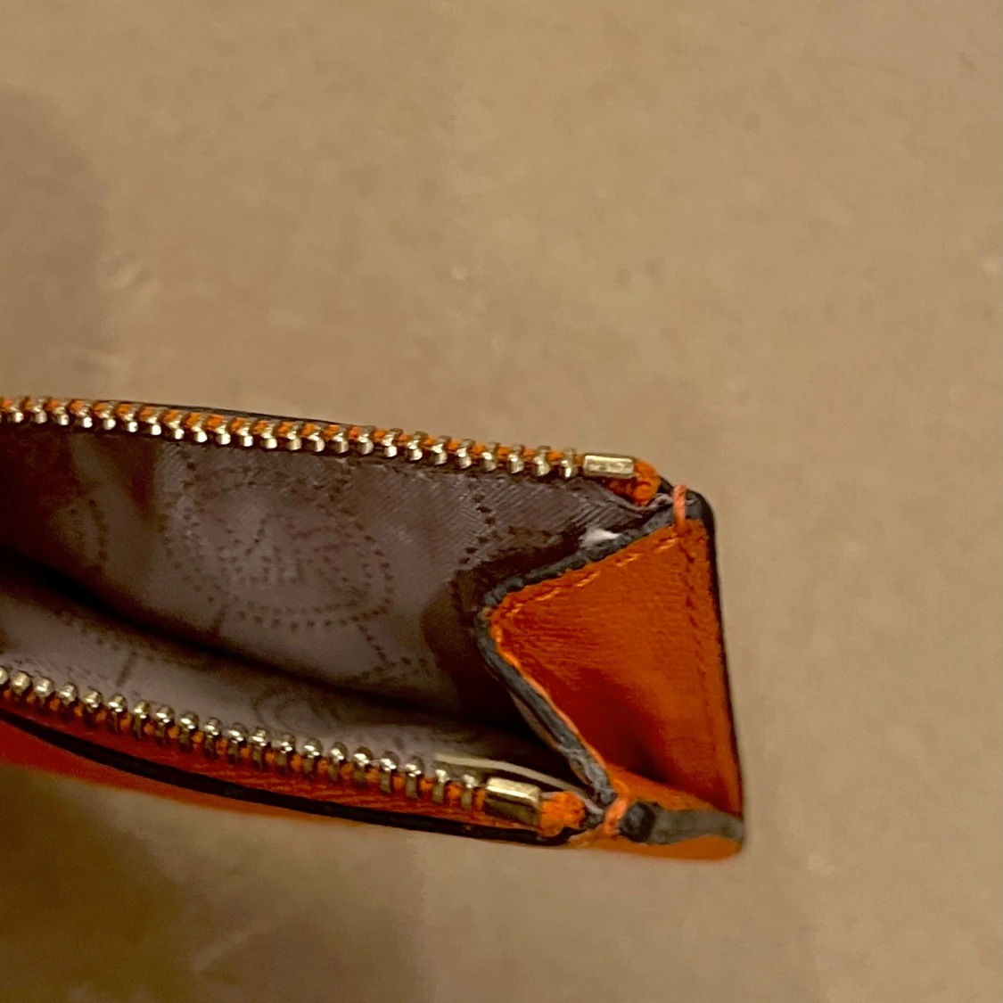 Mått: 9,3 cm x 7,2 cm. YKK dragkedjan ger både funktion och kvalitet, medan de subtila tecknen på användning, som ett litet skavt hörn och ett knappt synligt streck på framsidan, inte stör den eleganta designen. En perfekt liten väska för att förvara dina små värdesaker med både stil och finess.