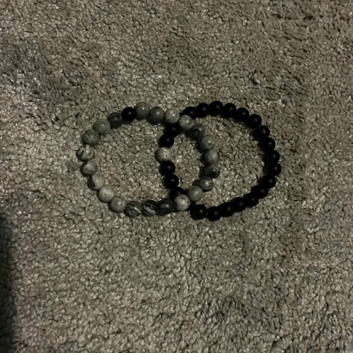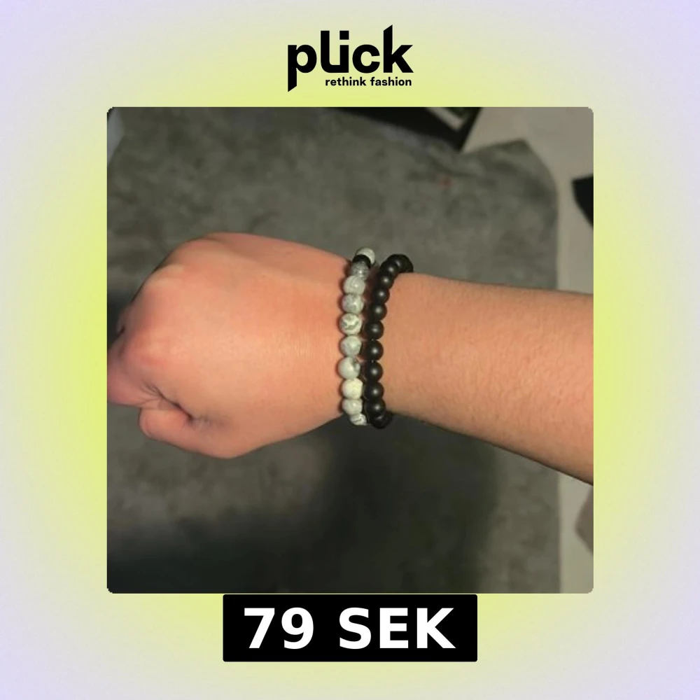 Säljer två stilrena elastiska armband. Ett armband har svarta pärlor och det andra har gråmelerade pärlor. Perfekta för att bära tillsammans eller var för sig för en snygg och stilren look till sommaren. Hör av er om ni har några frågor