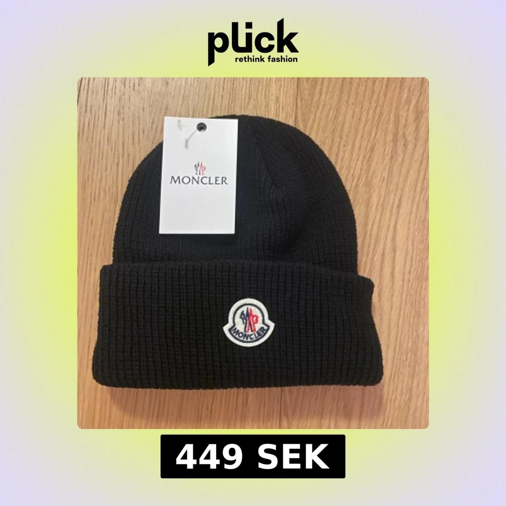 Svart ribbstickad mössa från Moncler med klassisk uppvikt kant och broderad logotyp framtill. Snygg och enkel design som passar perfekt till kalla dagar. Materialet är mjuk ull som håller dig varm och stilen är tidlös.