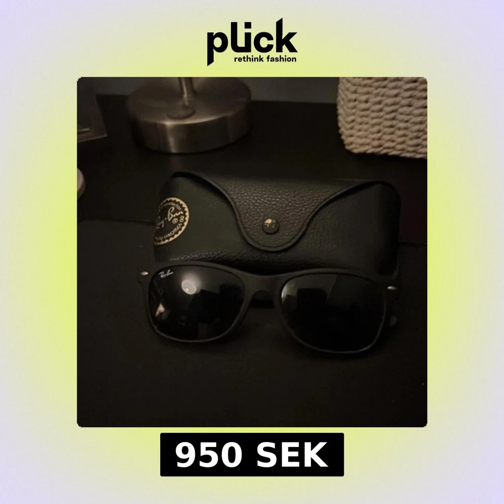 Klassiska svarta Ray-Ban Wayfarer solglasögon med ikonisk form och mörka glas. Säljs med original svart fodral i läderlook med Ray-Ban-logga i guld. Perfekt accessoar för en cool och tidlös stil. Nypris 1500