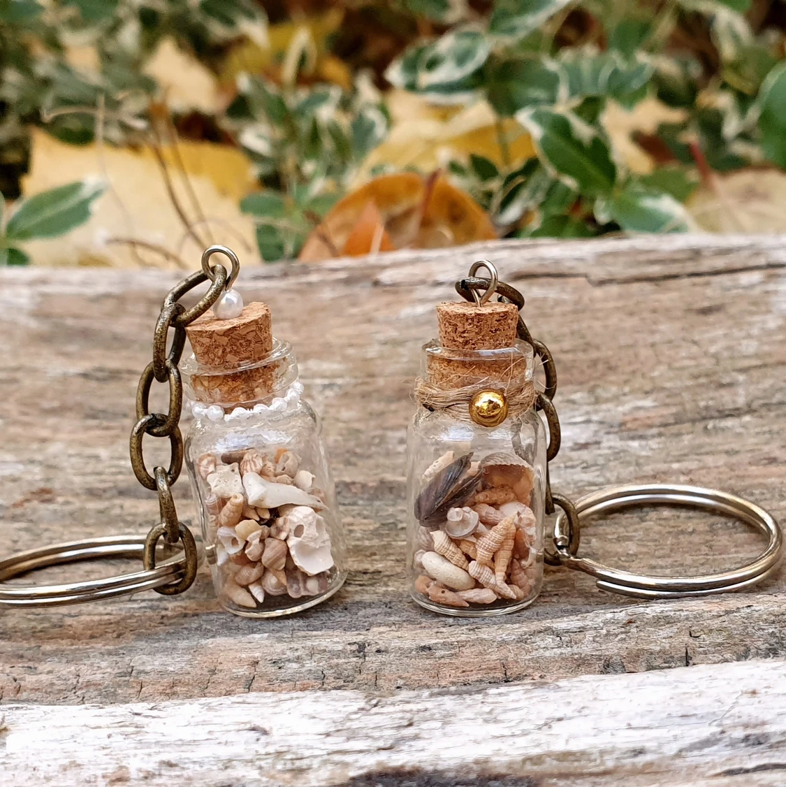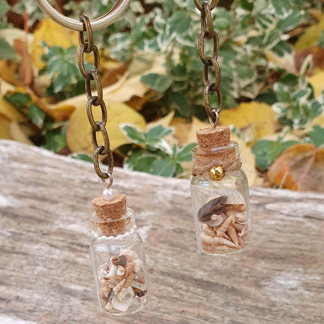 Miniatyr flaskor fyllda med snäckor handplockade i Bohuslän.