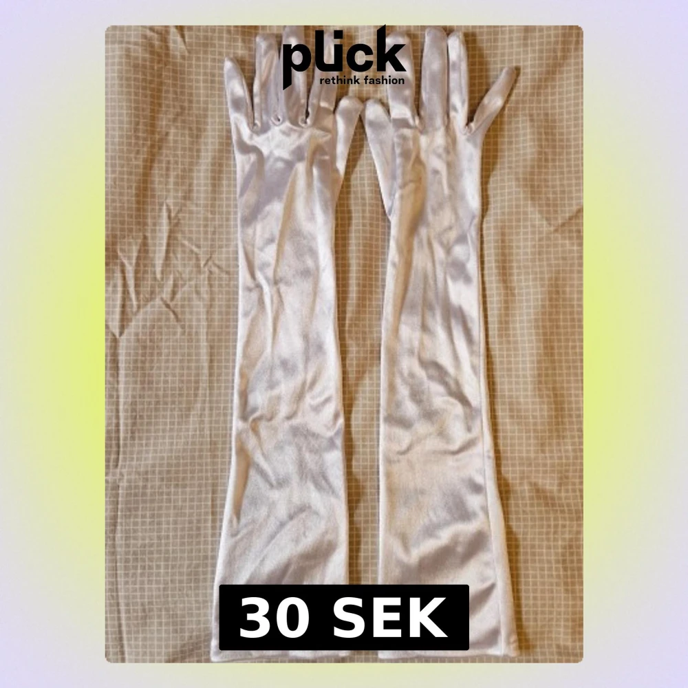 Långa handskar i vit satin. Handskarna är släta och glansiga med en mjuk känsla och går upp över armbågen för en classy look. Perfekta för att lyfta din outfit till nästa nivå.