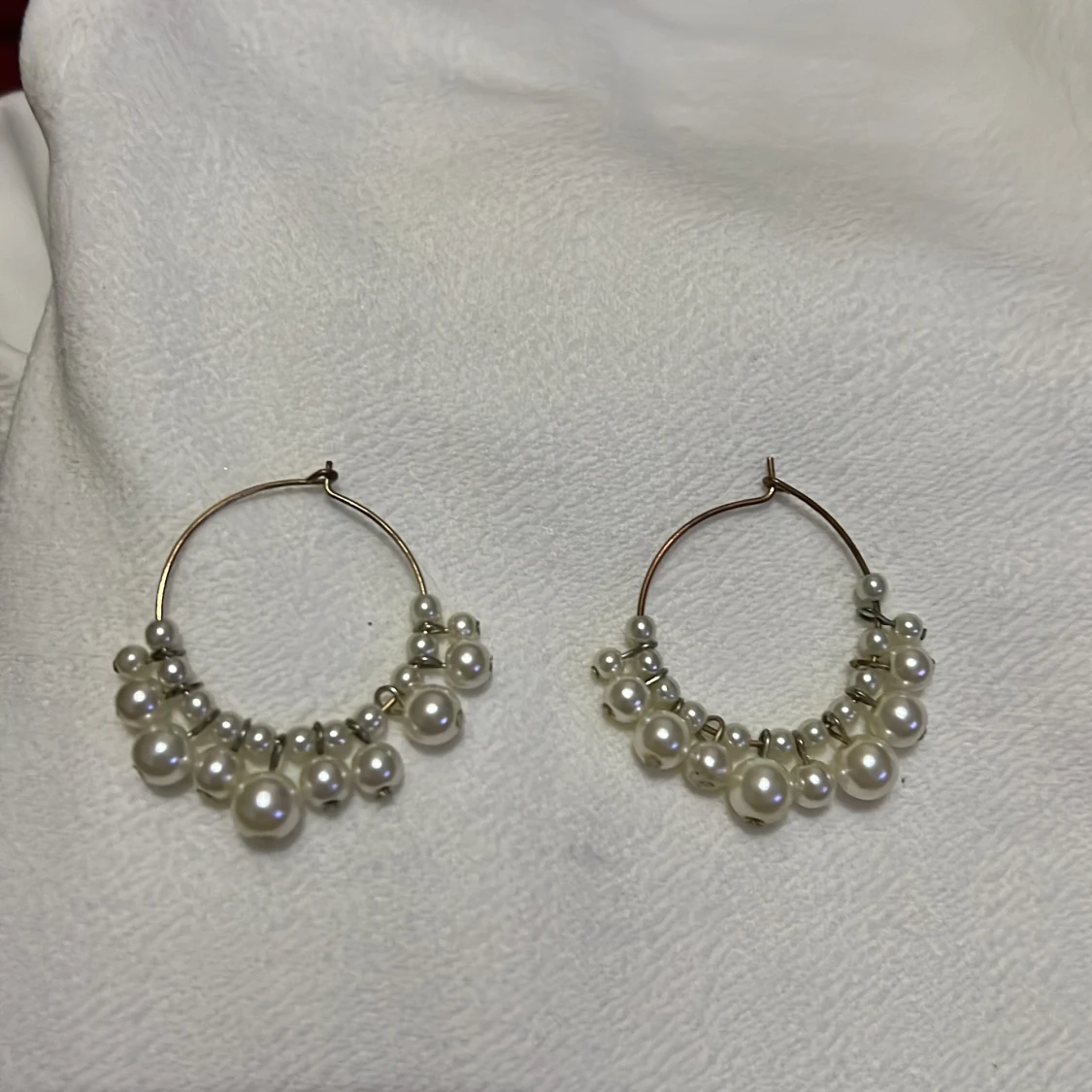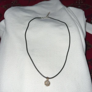 Svart halsband med rund diamant pärla. Runda öronhängen med Vita pärlor. Vit & rosa glittrigt läppglans. Märket boulevard.