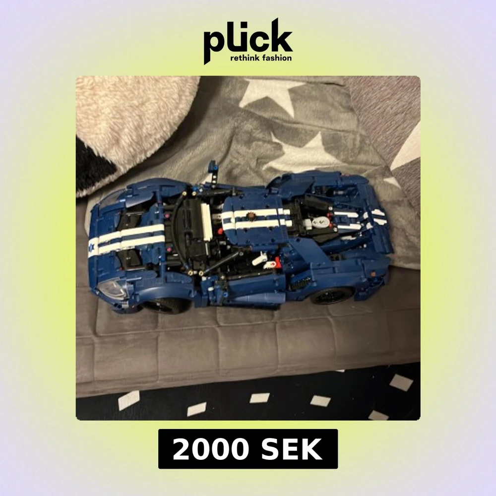 Snygg LEGO Technic Ford GT i blått med vita racingränder. Modellen är komplett och i mycket fint skick, inga synliga skador eller saknade delar. Perfekt för bilentusiaster och LEGO-samlare som vill ha en detaljerad och funktionell byggmodell.